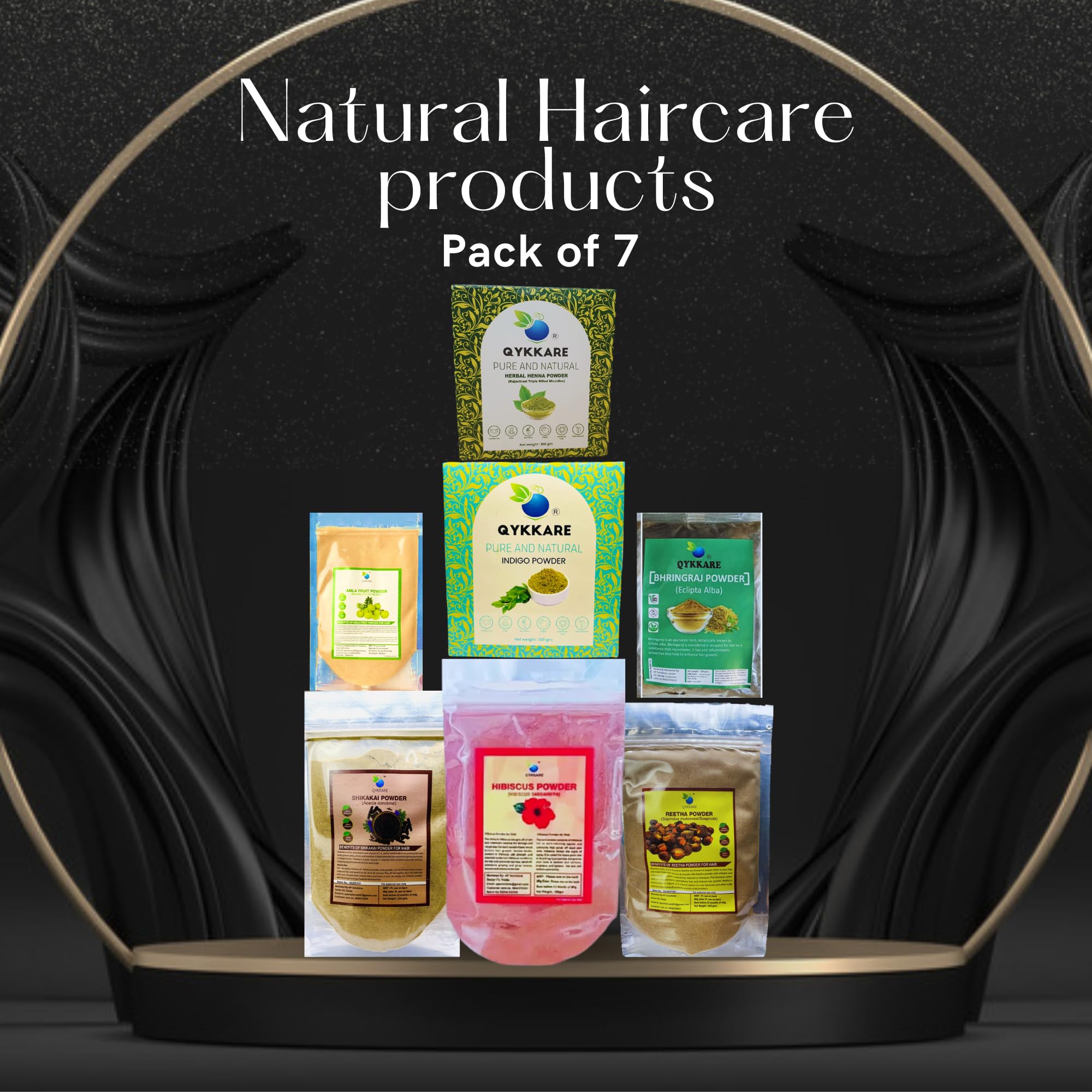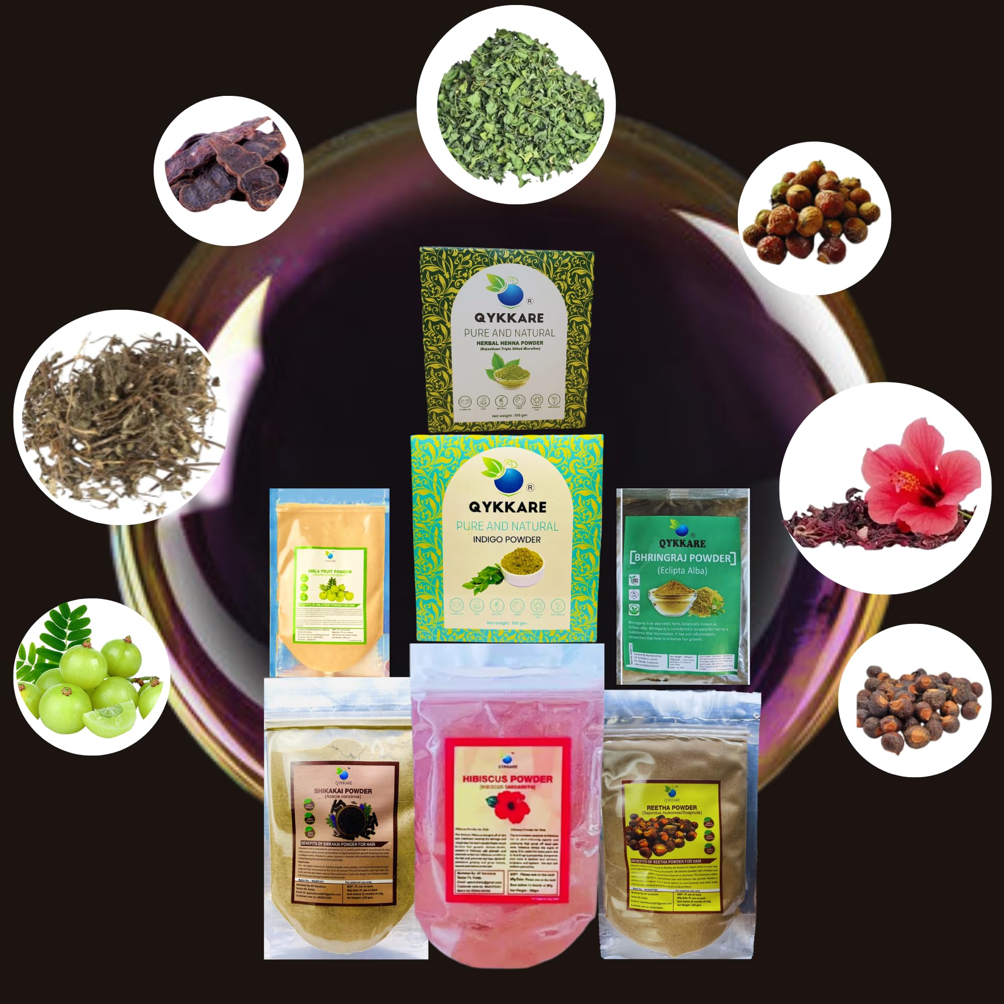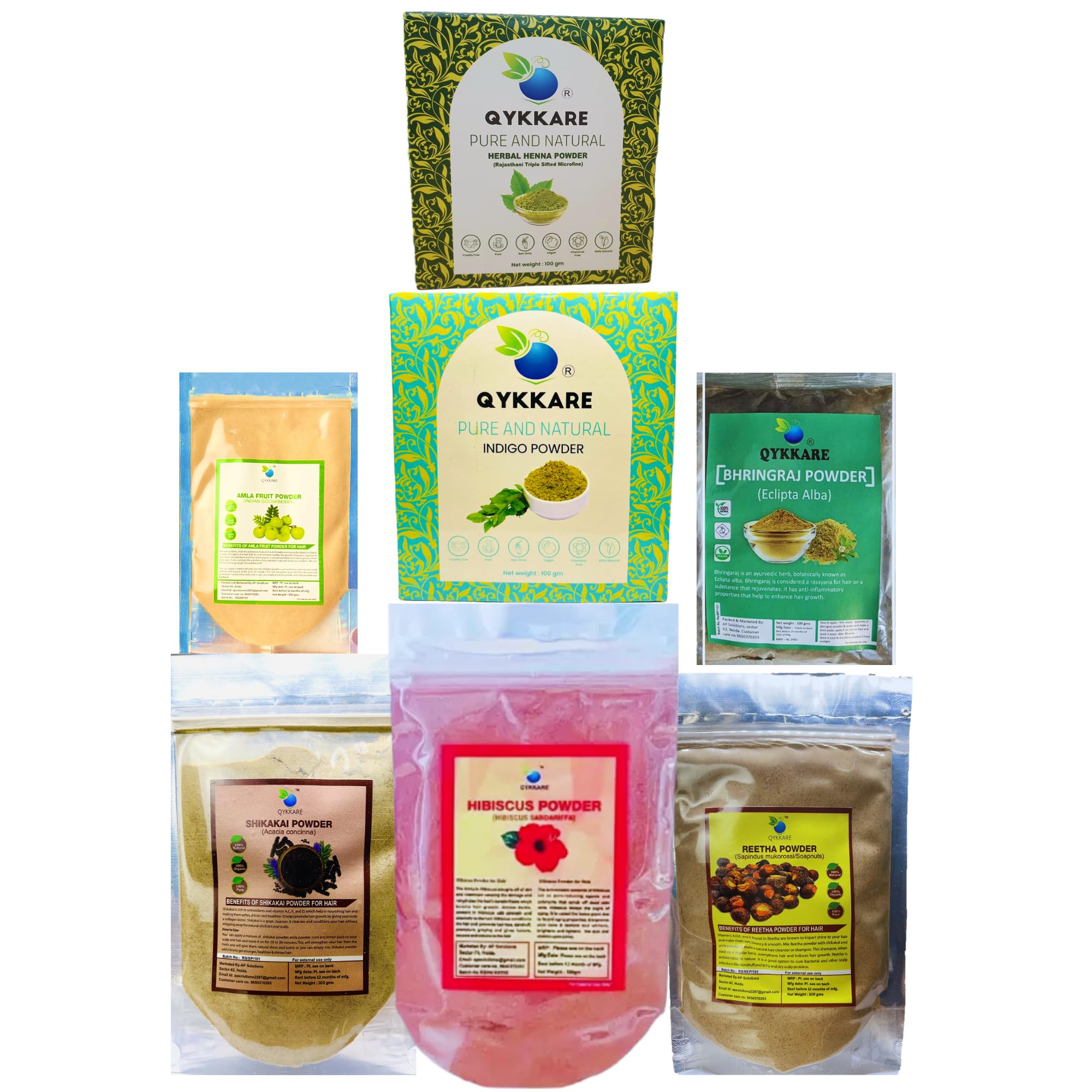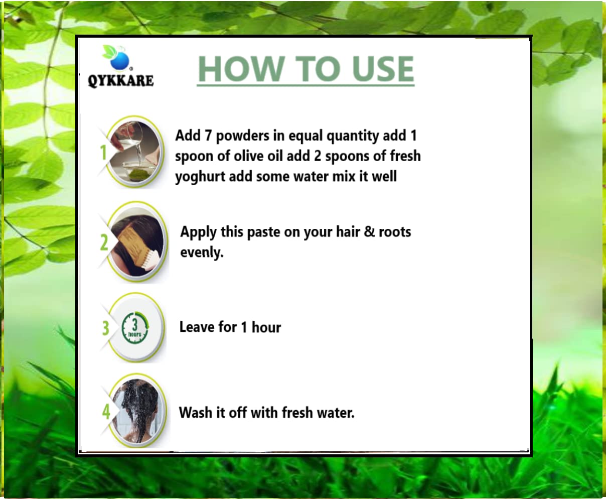 Qykkare hair care pack of 7 Hibiscus Henna Bhringraj Indigo Amla Shikakai Reetha
