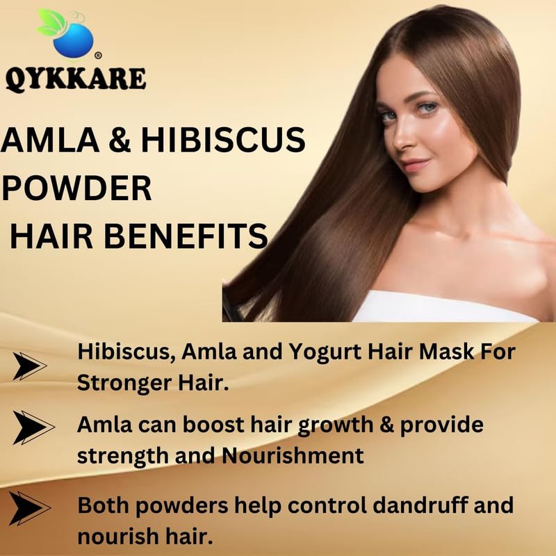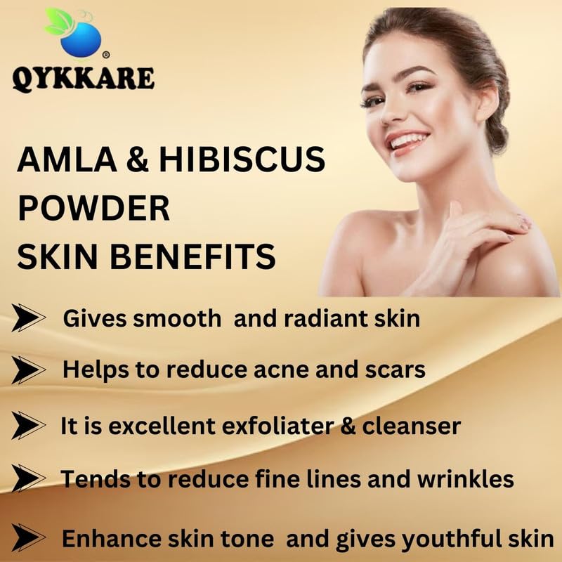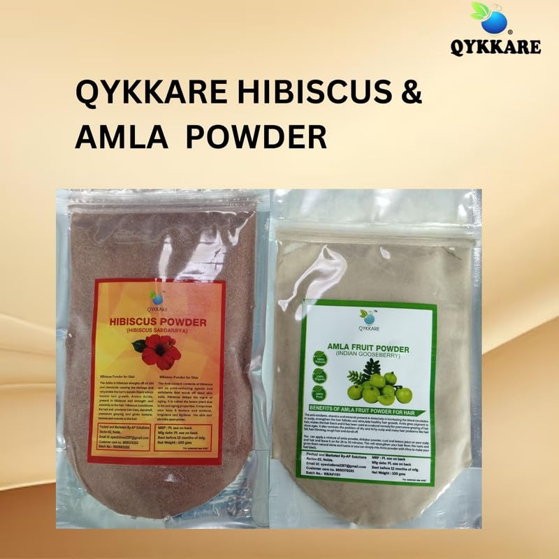 Qykkare Hibiscus Powder & Amla Powder combo for beautiful glowing skinhair growth and Strong hair (100gm x 2)