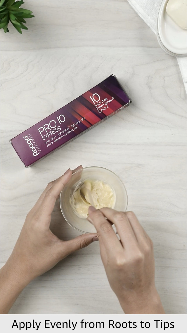 Raaga Pro 10 Express 10-minute Hair Colour is equipped with a high diffusion technology. Nourished with 5 essential oils - olive sesame almond lemon jojoba - for optimum care and deep conditioning to the hair. Almond oil rich in proteins helps moisturising and strengthening the hair. Jojoba oil conditions the hair and makes it healthy. Sesame oil controls dryness. Olive oil protects and softens the hair. Lemon oil prevents hair loss.