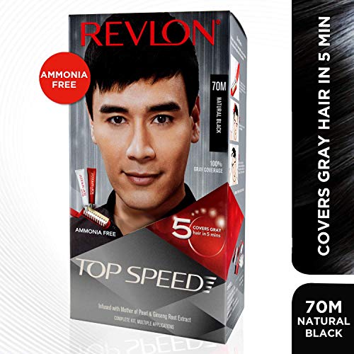 Revlon Top Speed Hair Color for Men Natural Black with Outrageous Conditioner 190ml | 100% Grey Coverage in 5 Minutes | Prevent Fading, add Volume, Softness & Shine to Hair