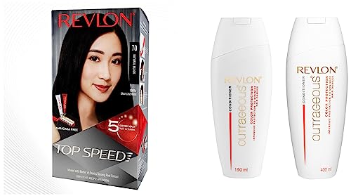 Revlon Top Speed Hair color Women, Natural Black 70 & Revlon Outrageous Color Protection Conditioner, 400ml & Revlon Revlon Outrageous Color Protection Hair Conditioner - 190 Ml, 190 ml