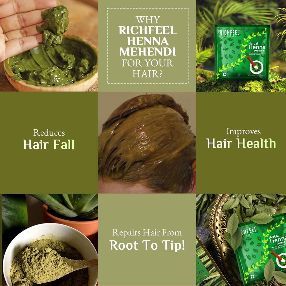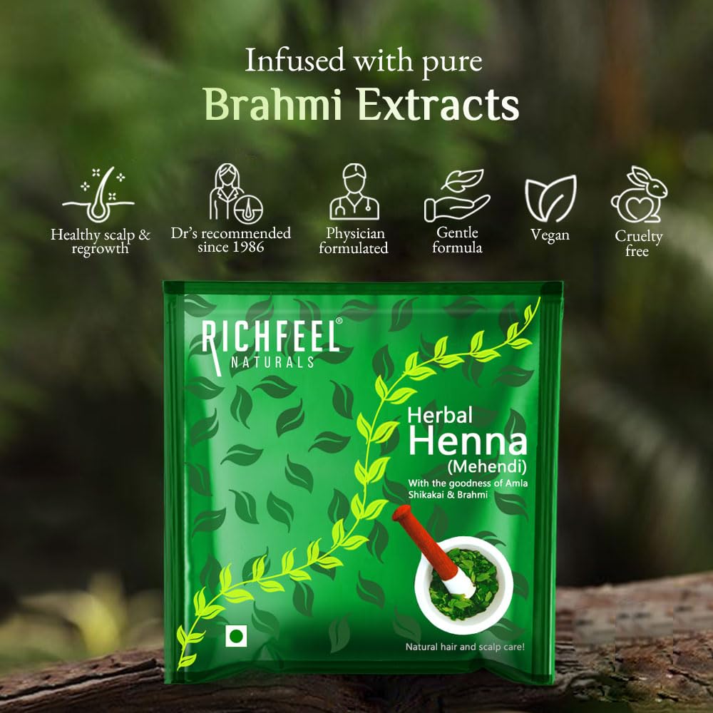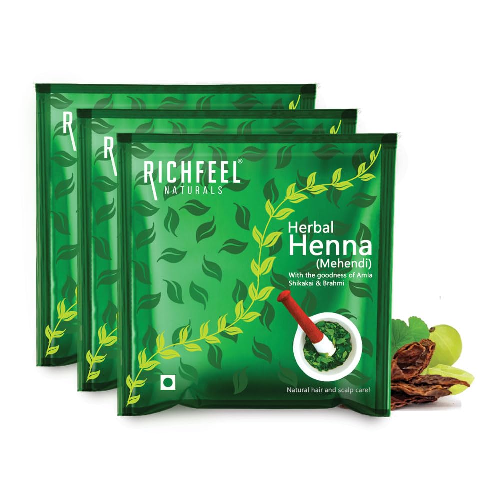 Richfeel Heena Mehendi Powder| Mehandi powder for hair | Natural Hair Color and Conditioning with the goodness of Amla Shikakai & Brahmi | 100g (Pack of 3)