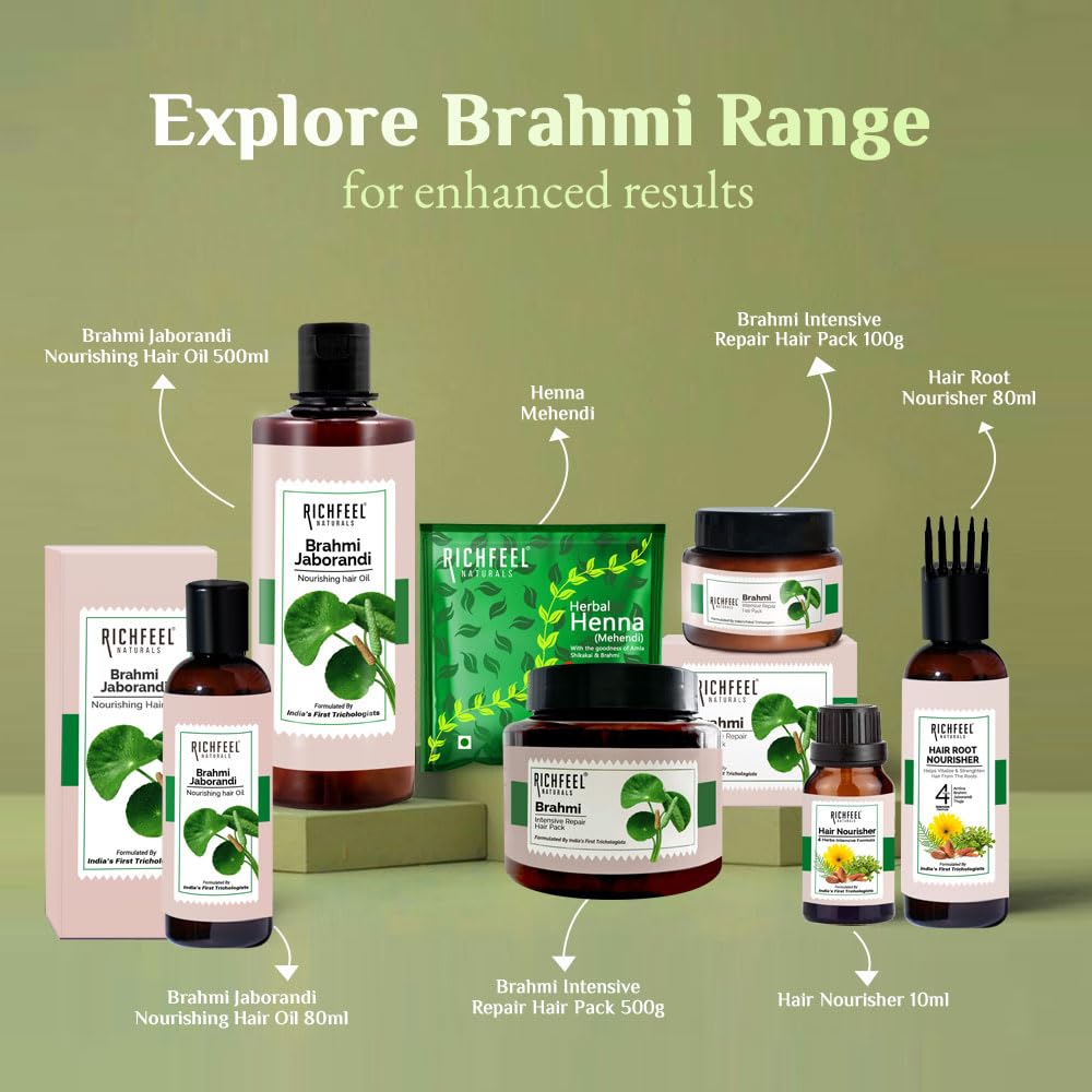Henna is a trusted natural and effective way to cover your grey hair. Not only that but Henna also makes your hair strong voluminous and shiny. Richfeel Henna mehendi for hair has been prepared from pure Henna leaves with the highly efficacious combination of Arnica Amla Reetha & Shikakai. Arnica is a perennial herb belonging to the sunflower (Asteraceae) family. It is very effective for the treatment of split ends Amla or the Indian gooseberry is a wonderful beauty ingredient especially for your hair. This mehendi for hair prevents dandruff gives your hair a natural shine while nourishing hair from root to tip. It also helps reduce hair fall Reetha or soapnut is excellent at conditioning and rejuvenating the hair Shikakai is a wonderful herb that has been used for years for hair care. This mehendi powder helps promote hair growth and reduces hair fall. Just add the mix in water apply it on your hair for one hour & then wash it off. It not only gives your hair a natural color but also nourishes it. With Richfeel Heena mehendi for hair grey hair can be covered naturally!