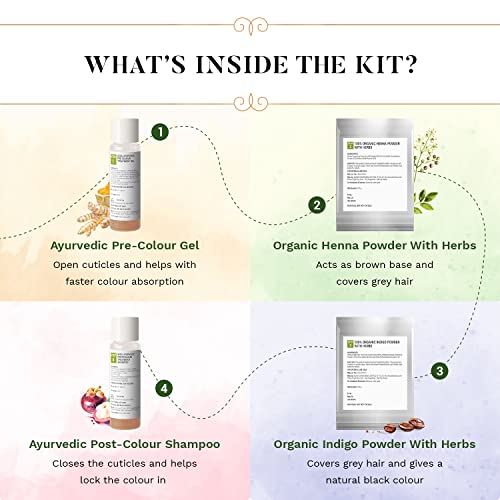 ORGANIC HAIR COLOURS - Brown Henna base and black Indigo base infused with Amla Shikakai Aritha Walnut & Coffee. Covers grey hair & gives a natural black colour.