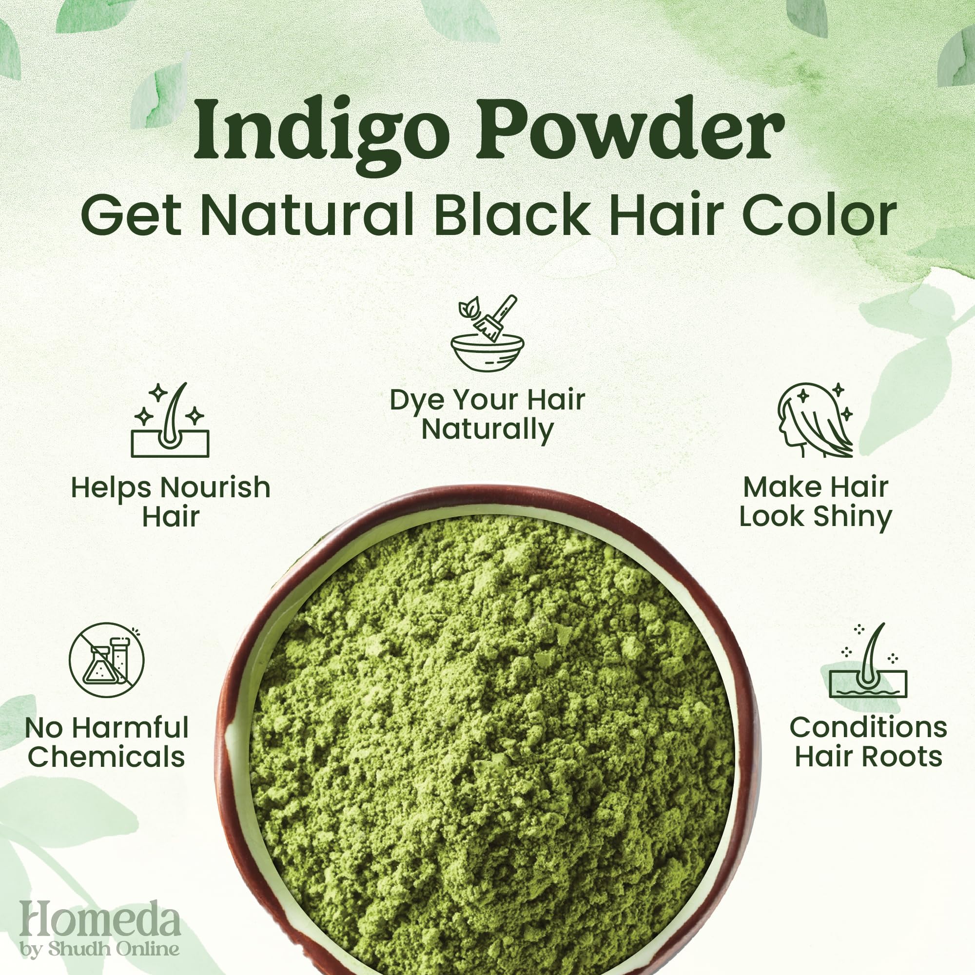 • 100% NATURAL PURE and ORGANIC - Best Indigo powder for hair has no aaddded chemicals dyes or perfumes. Shudh Online Indigo Powder used along with our powder is safe for use on all kinds of hair