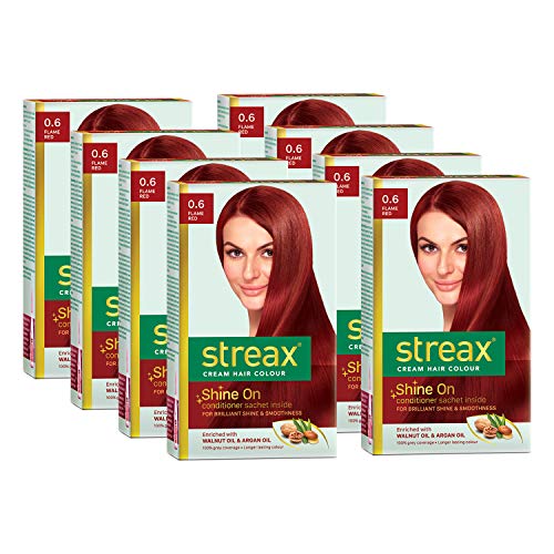 Streax Cream Hair Color for Unisex, 60ml - 0.6 Flame Red (Pack of 8)