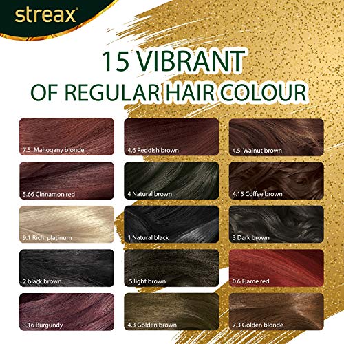 • ENRICHED WITH WALNUT & ARGAN OIL – Streax Cream hair colour is enriched with Walnut and Argan oil The conditioning effect will enhance your hair strands giving you a gorgeous and appealing look