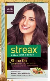 Streax Cream Hair Colour for Women & Men | Burgundy | Enriched with Walnut & Argan Oil | Instant Shine & Smoothness | Long Lasting Hair Colour | Soft & Silky Touch| 60 ml x Pack of 12