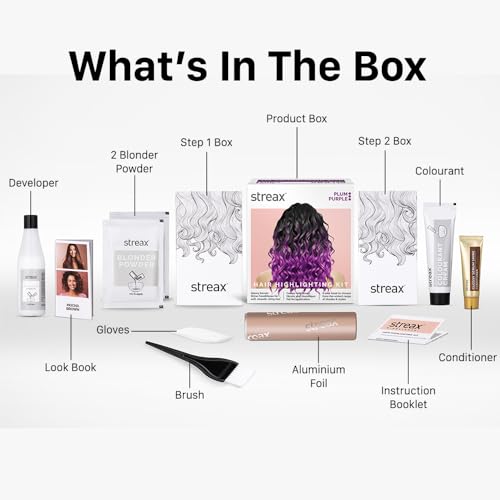 Transform your hair with Glamorous highlights right from the comfort of your home using our Streax Ultralights Hair highlighting kit. Streax Semi Permanent Hair colour gives 100% grey coverage provides depth & definition resulting in glossy and shiny hair. Streax Hair Colour is also available in several dazzling shades. Its time to say goodbye to dull hair and embrace a new level of vibrancy and dimension with ease with our Streax Hair Highlighting Kit. With our Streax Highlighter hair color you are the artist. Whether you prefer a subtle sun-kissed effect or dramatic streaks the choice is yours. Express your creativity and add a touch of exitement to your look. No need to worry about complicated processes. Our hair colour pack comes with everything you need for an easy and seamless application. The step-by-step instructions guide you through the process making it suitable for both beginners and experienced users. Reveal the beauty of your hair with our Streax Hair Color. Unleash your inner stylist and enjoy the freedom by using our DIY kit with different highlight styles and get professional hair colour results at home. Get ready to turn heads with your refreshed and vibrant hair colour all thanks to our Hair Highlighting Kit. Streax carries a sharp focus while developing products under its portfolio so as to provide world-class products with unique characteristics & high quality to all types of hair textures. Streax offers a wide range to its vibrant consumers with their semi permanent hair colour hair color for women and men . Explore our range of Hair Styling and Hair care products for all your needs! What's Inside the Box :: Blonder Powder SachetDeveloper Colourant TubeConditioner TubeGloves Highlightning Brush Aluminium Foil Information Leaflet Look Book