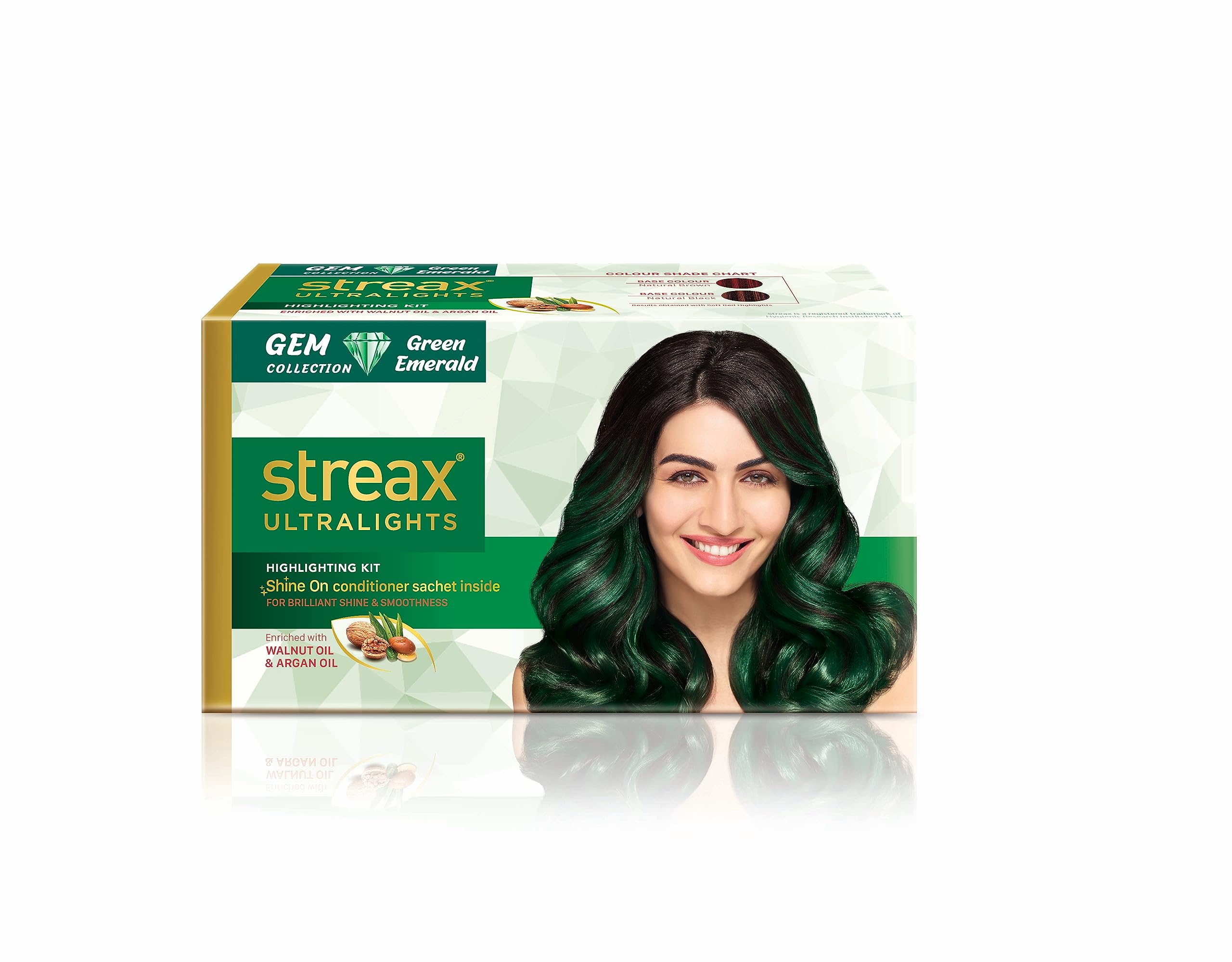 Streax Ultralights Hair Colour Highlight Kit Green Hair ColourGem Collection - Green Emerald - Pack Of 1 Enriched With Walnut&Argan Oil Hair Colour For Women RichVibrantEasy To UseDiy Application