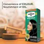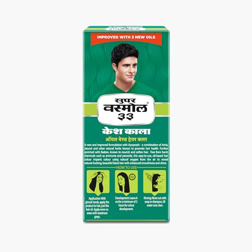A new and improved formula with ayurprash a combination of amla jasund and other natural herbs known to promote hair health . Further enriched with Badam known to nourish and soften hair . Easy to use - oil based hair colour imparts colour using natural oxygen from the air to reveal natural looking beautiful black hair with enhanced smoothness and shine .