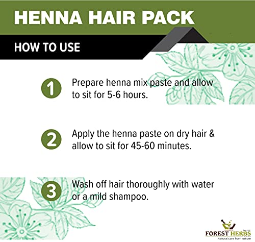 Forest Herbs Henna (Mehandi) Powder is made of freshly cultivated Henna leaves which are sourced from the best land within the City of Henna : Sojat ( Rajasthan ). The Mehendi Powder of Forest Herbs offers 100% pure & natural and made from Henna Leaves. This Rajasthani Mehndi Powder of Forest Herbs is 100% toxins free pesticide free chemical fertilizer free. It is ensured while making the Forest Herbs Mehandi Powder that the Henna leaves are sourced from crop grown only with the natural rainfall as it gives best heena. Forest Herbs authentic Rajasthani Mehendi powder gives natural rich reddish tone to the hair and thus the best PPD-free substitute to hair dyes. This Mehandi Powder is of Triple filtered ( Cloth filtered ) microfine Rajasthani henna of AAA grade which contains highest lawsone content. damages. It is also suitable for making chemical free cone at home which can be used for making mehndi designs mehndi tatoos. Regular application of it on hair helps in Fighting scalp conditions like dandruff hair damage and hair dye damages. It is also act as Good cooling properties agent to sculp and adds strength & good volume to the hair. For Hand & Mehndi Designs:- Mix Forest Herbs henna powder in water to form a smooth paste keep this paste 3-4 hours. Apply on hand/feet. Items such as eucalyptus oil clove oil lemon juice sugar can be mixed to increase henna color.