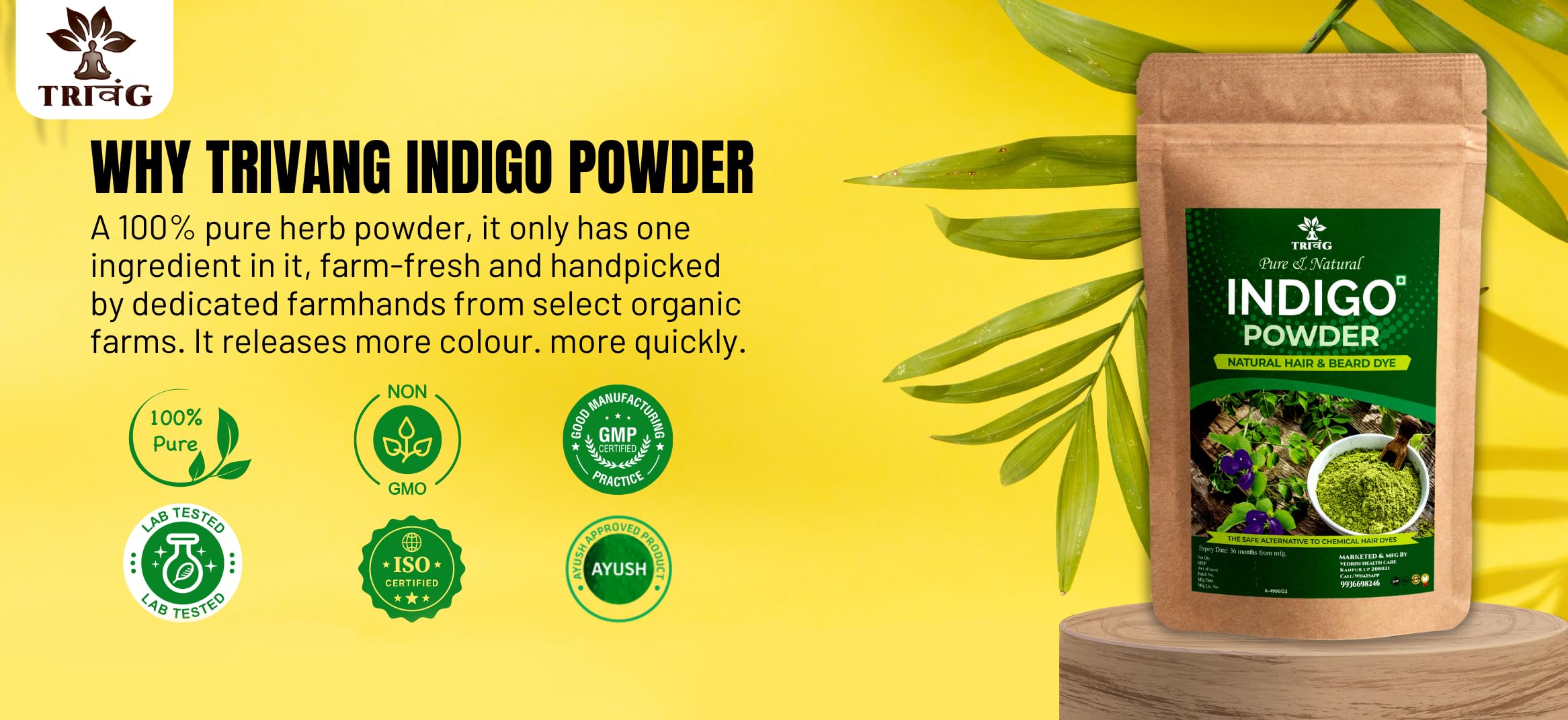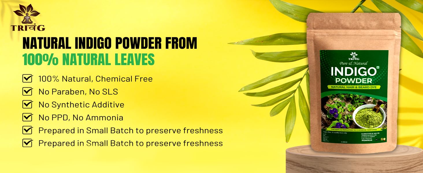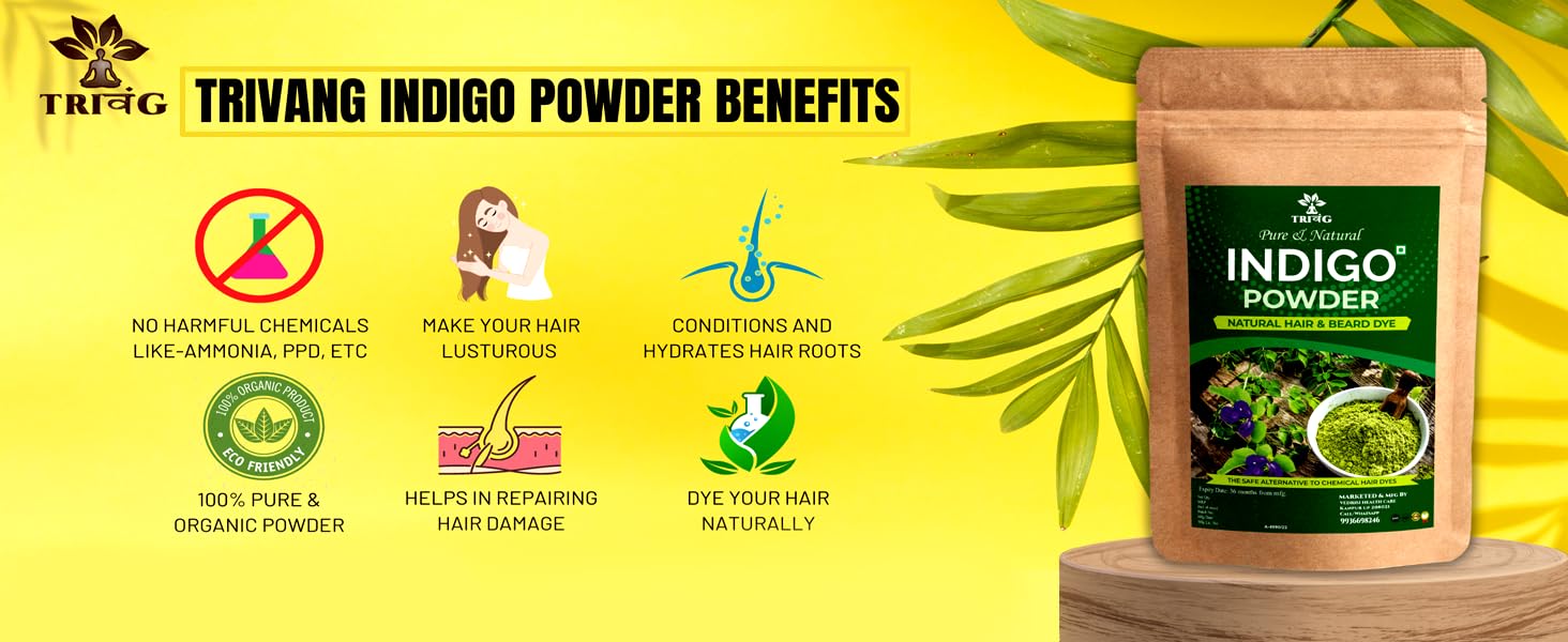Trivang 100% Organic (400G) Herbal Indigo Powder for Natural Hair Coloring Protects hair from Damage