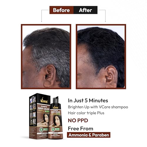 • NO HARMFUL CHEMICALS: VCare Shampoo Hair Color is completely safe from hazardous and Harmful chemicals like PPD Ammonia Silicones and Parabens.
