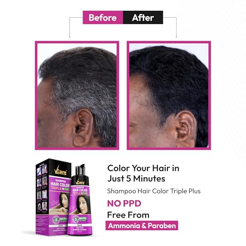 • NO HARMFUL CHEMICALS: VCare Shampoo Hair Color is completely safe from hazardous and Harmful chemicals like PPD Ammonia Silicones and Parabens.