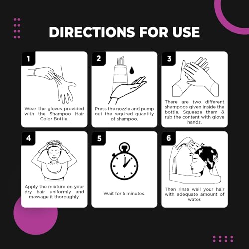 • LONG LASTING: Hair color shampoo black is long lasting up to 3 weeks and no Ammonia formula of our shampoo hair color results in long-lasting rich colour for Men and Women.