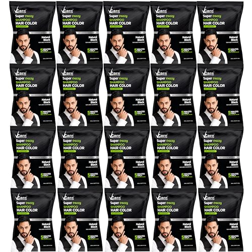 VCare Super Eazzy Hair Colour Shampoo for Women and Men 20ml | Only 5 Minute Root Hair Dye Coloring Kit Head, Moustache, Beard, Hands, Chest | No Ammonia (Pack of 20, Black)