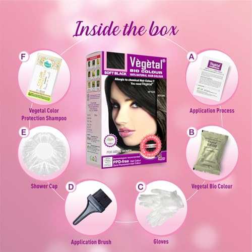 Regain the shiny luster of your hair that was lost due to ppd in your hair color with ppd free vegetal bio color. How to apply use the gloves given inside the pack to apply vegetal bio color from the root to the tip of your hair with the help of a comb and brush. This semi-permanent hair color can be used even if your hair is colored with henna/chemical dyes.