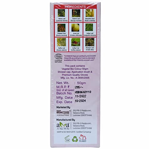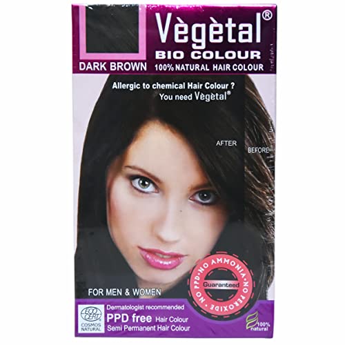 Vegetal Bio Hair Colour - Dark Brown 50g Achieve Natural, Ammonia-Free Hair Color PPD-Free, 100% Herbal Certified Organic for Men and Women UV Protection and Luster Maintenance Complete Kit