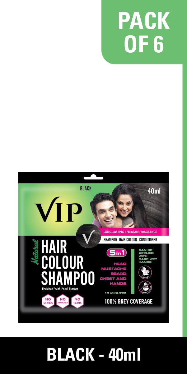 HomeHealth & PersonalHair CareNatural Hair ColorVIP Hair Color Shampoo for Women & Men | 15-Minute Hair Dye | Easy to Use | Natural Black | 240ml (40ml x 6 Pack) | Long-Lasting & Ammonia-Free Color