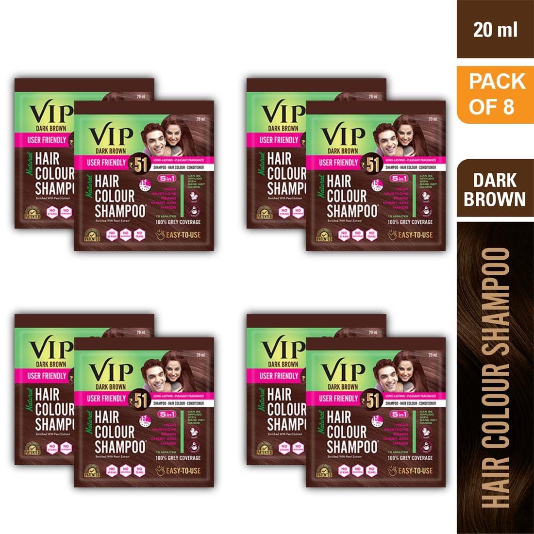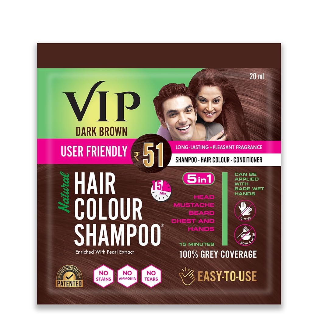 VIP Hair Colour Shampoo for Men and Women 180ml Dark Brown | No Ammonia | Long Lasting Hair Color | Hair Colour At Home