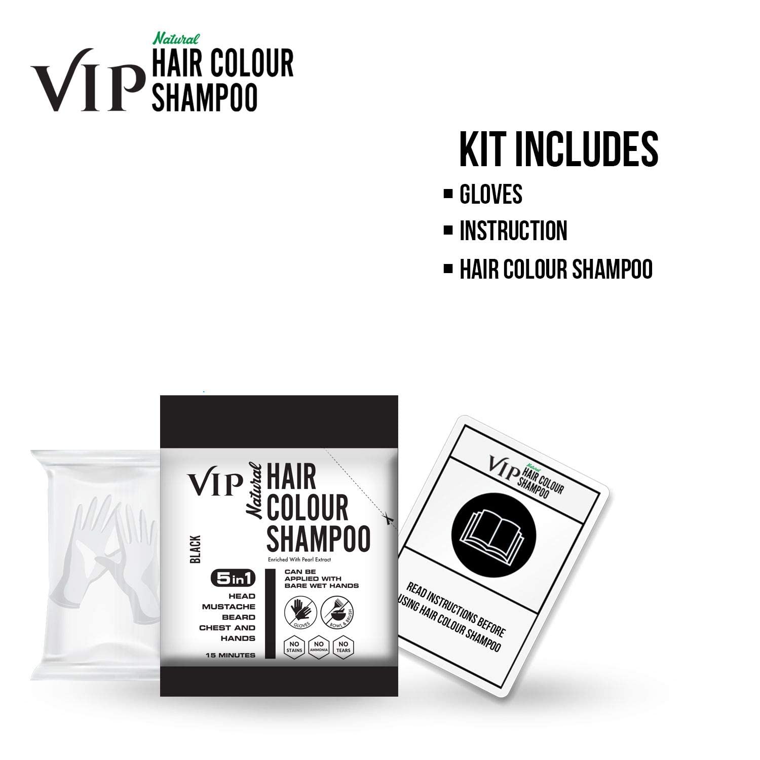 VIP Hair Colour Shampoo Men and Women Natural Black 20ml (Pack of 11)