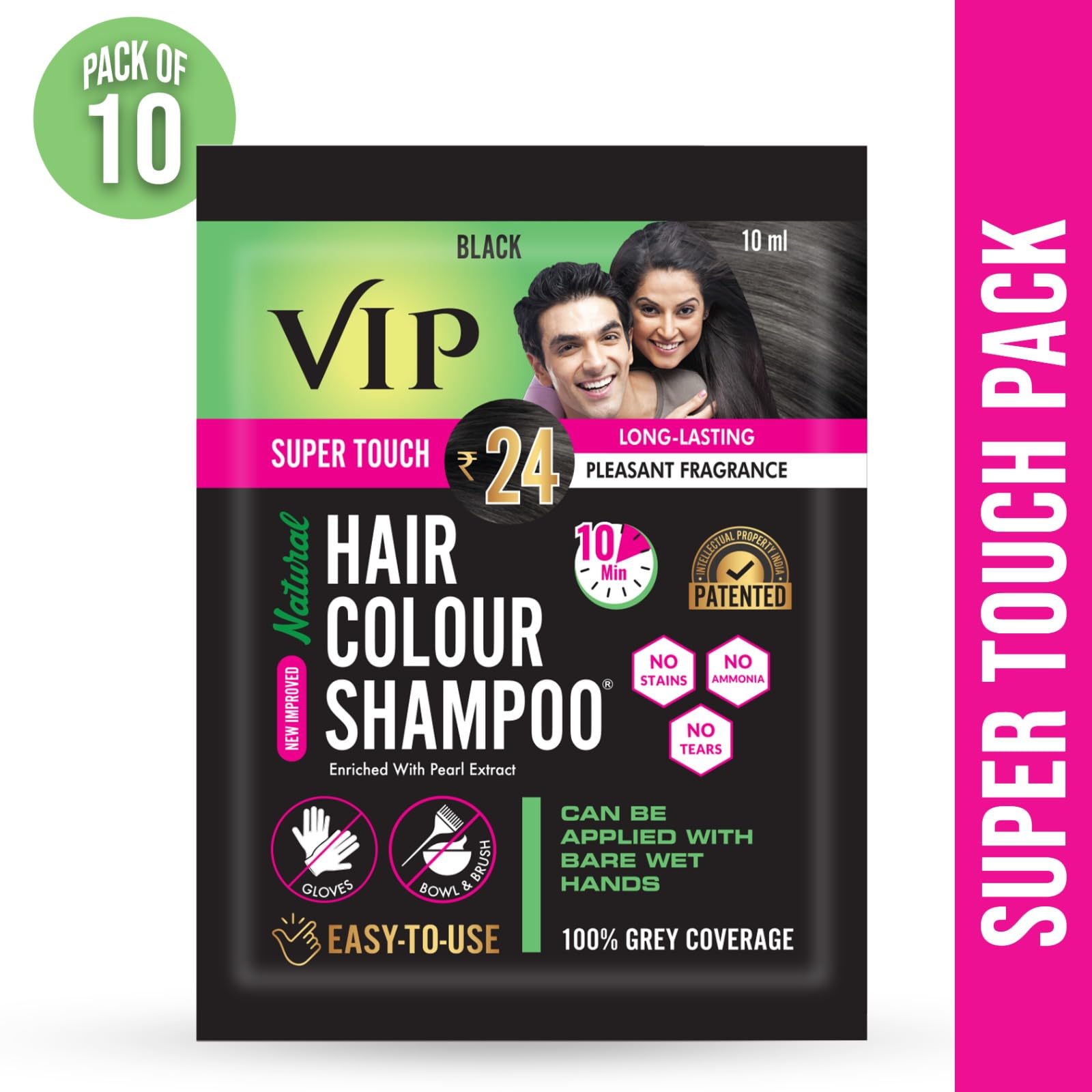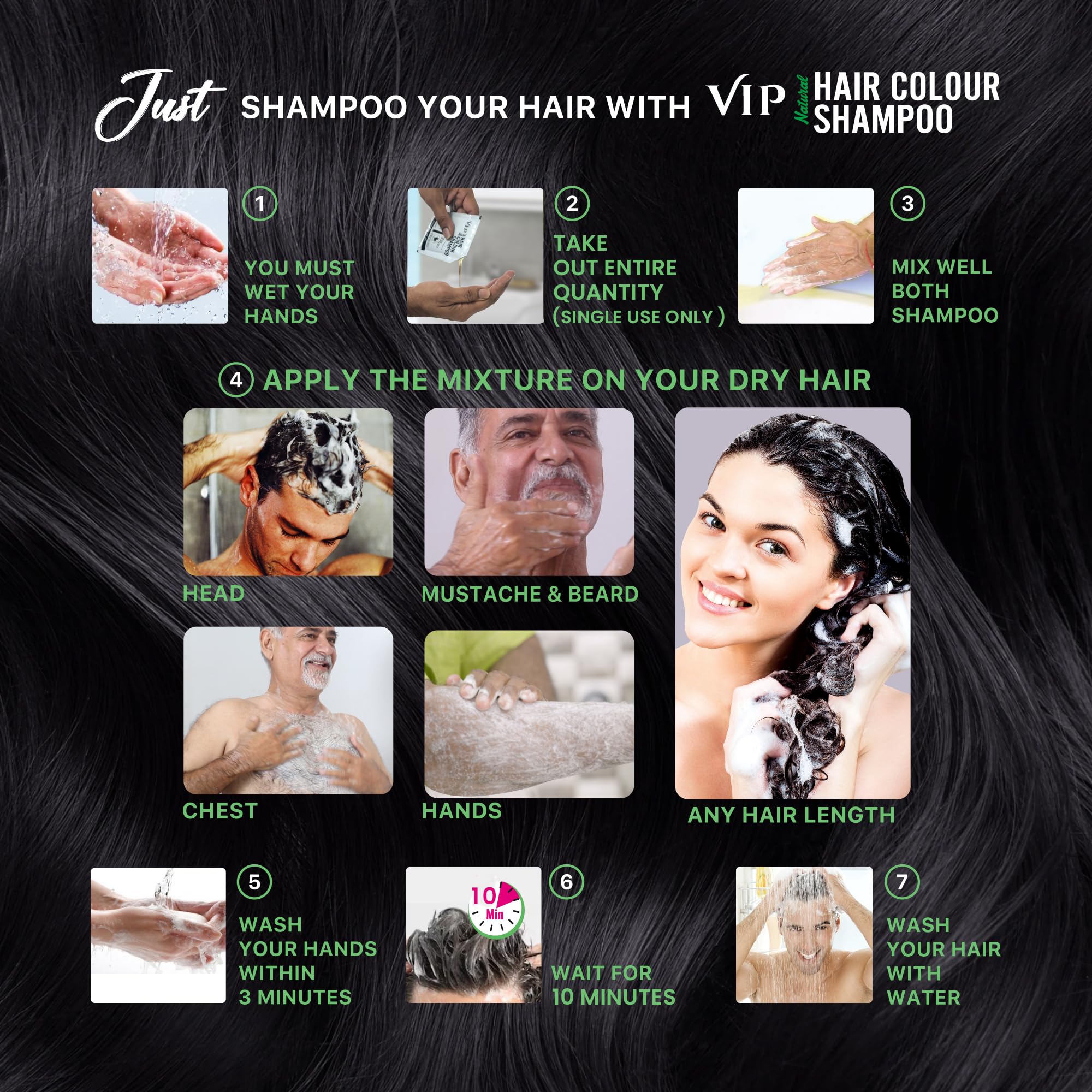 VIP Natural Hair colour shampoo | Black Hair Color 100ml (10ML - pack of 10)