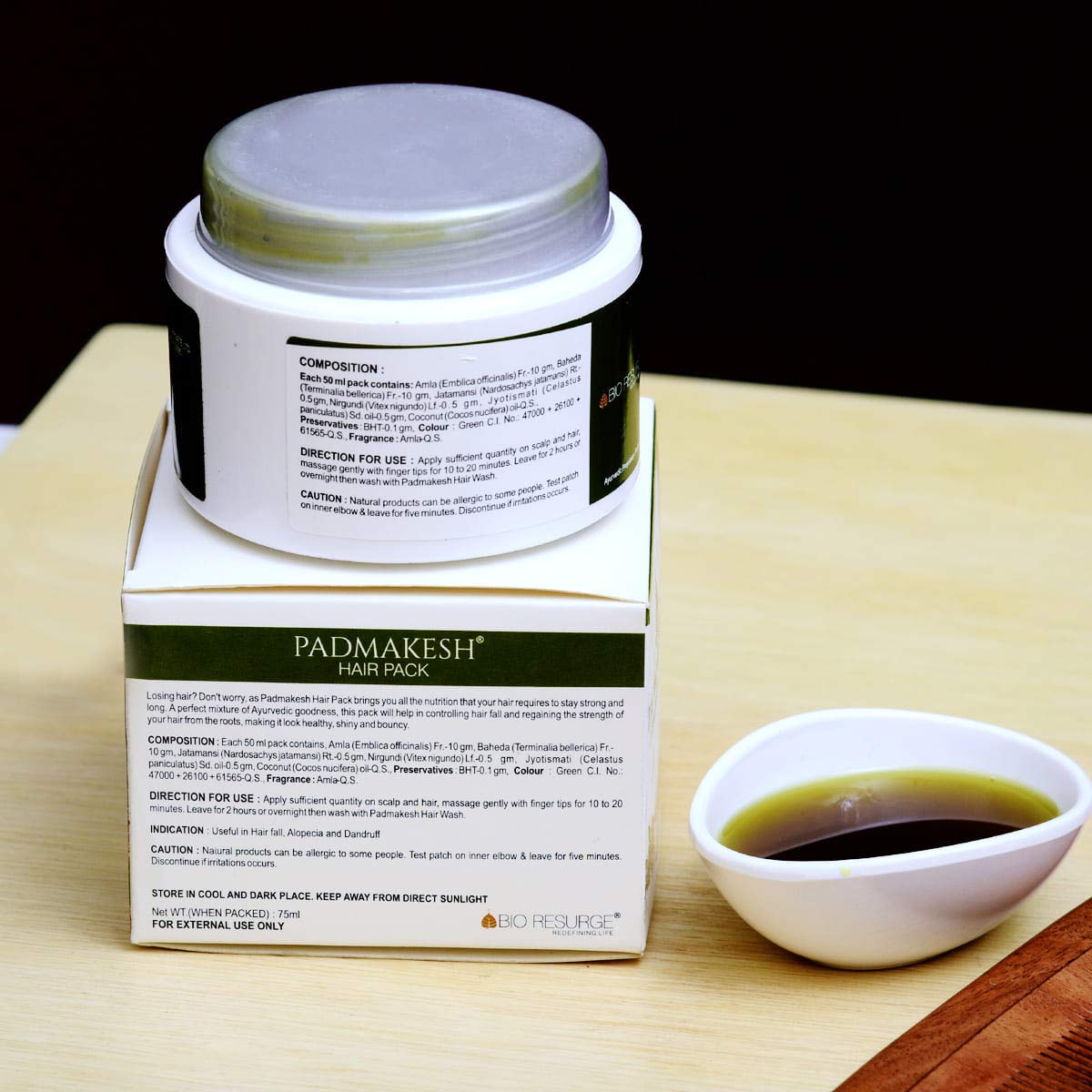 BIO RESURGE LIFE Padmakesh Hair Pack made with potent ayurvedic herbs like amla baheda jatamansi nirguni and coconut oil to control Hair fall and remove dandruff