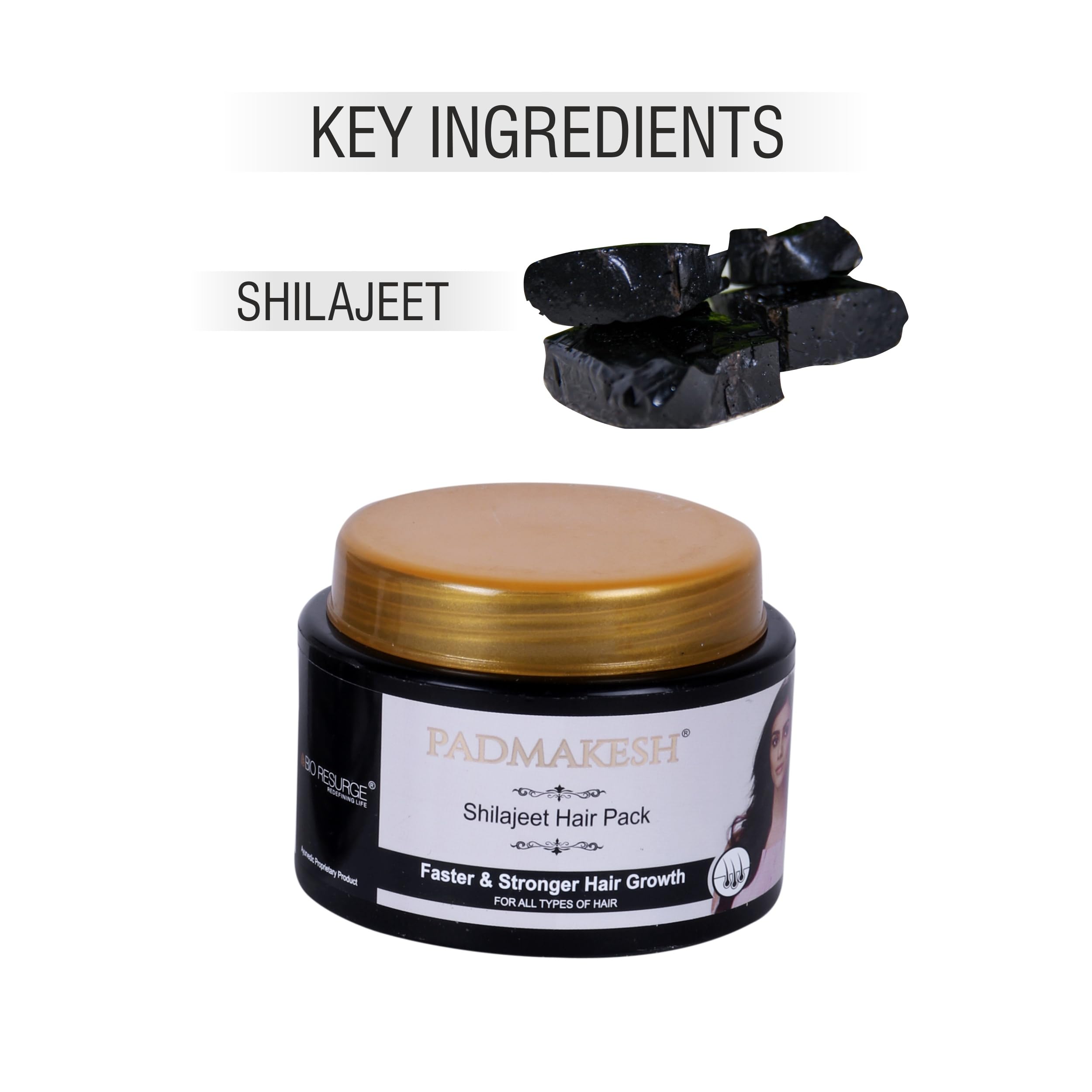 BIO RESURGE LIFE Padmakesh Shilajit Natural Hair pack Help for Makes hair longer stronger thicker and shinier | Suitable for all types of hair (75 gm)