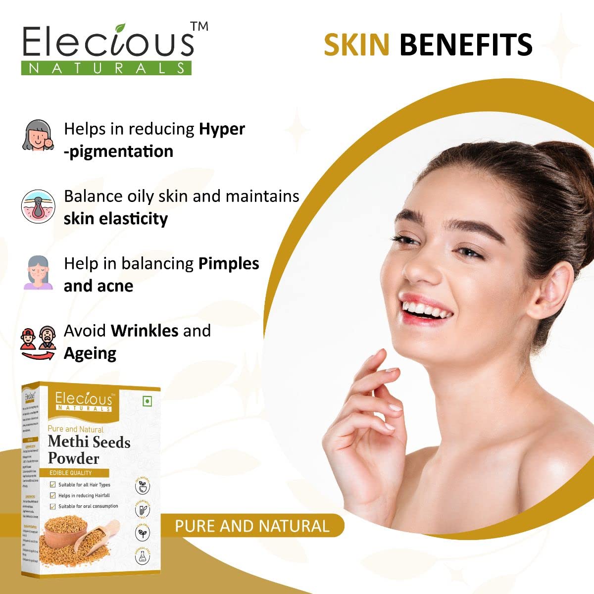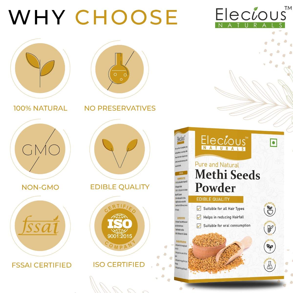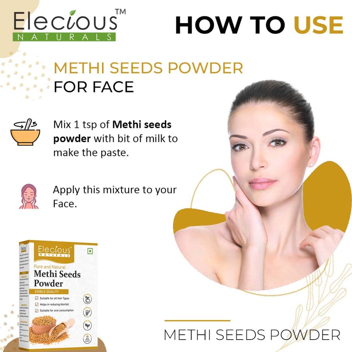 Elecious 100% Methi Seed Powder For Hair Growth - 200 g | Fenugreek Powder | 100% Pure and Natural | Ideal for Hair care Hair growth Skin care and Eating