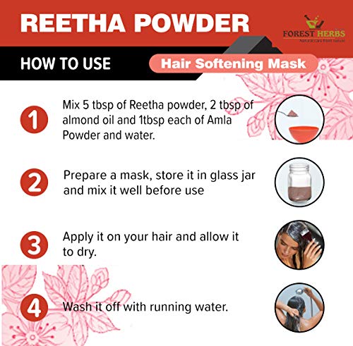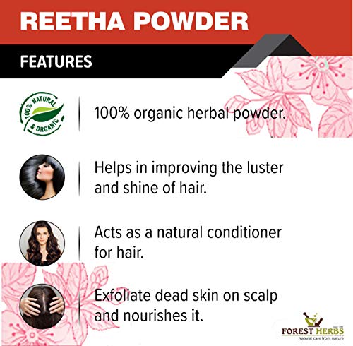 The Forest Herbs Organic Reetha Powder is a natural powder that provides all sorts of care required by your delicate strands of hair. Reetha extract powder has been considered the perfect companion for hair since ages and Reetha for hair is a perfect key to get great attractive hair naturally. It will keep all your hair related problems such as dandruff dryness and itchiness of scalp at bay. Washing with reetha provides shiny and silky hair.It is 100% organic certified finest quality Reetha for hair growth.