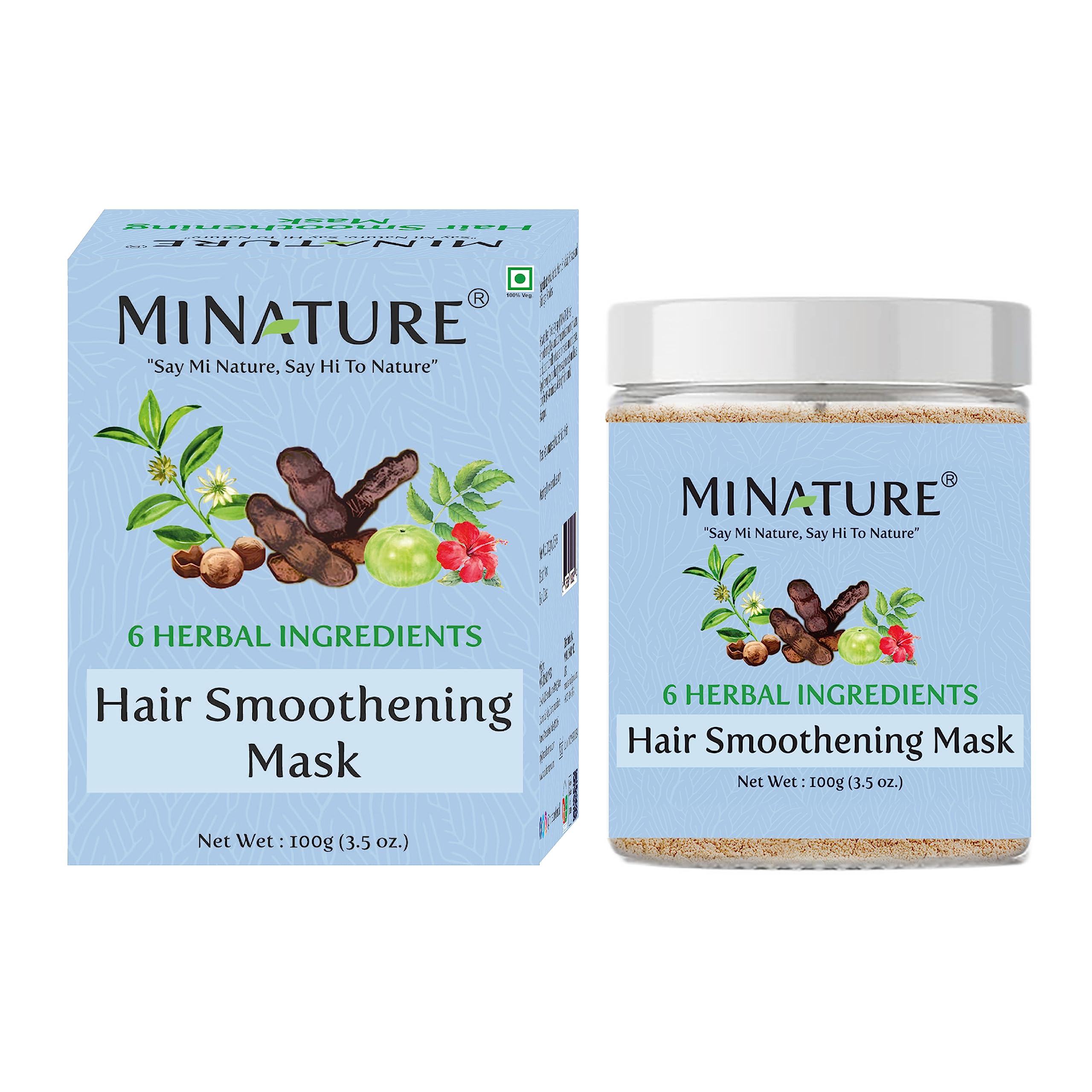 Hair Smoothening Mask by mi nature | 100g(3.5 oz) | Nourishes Hair | Contains Amla Aritha Neem Shikakai Hibiscus and Bhringraj powder | 100% Natural Herbal