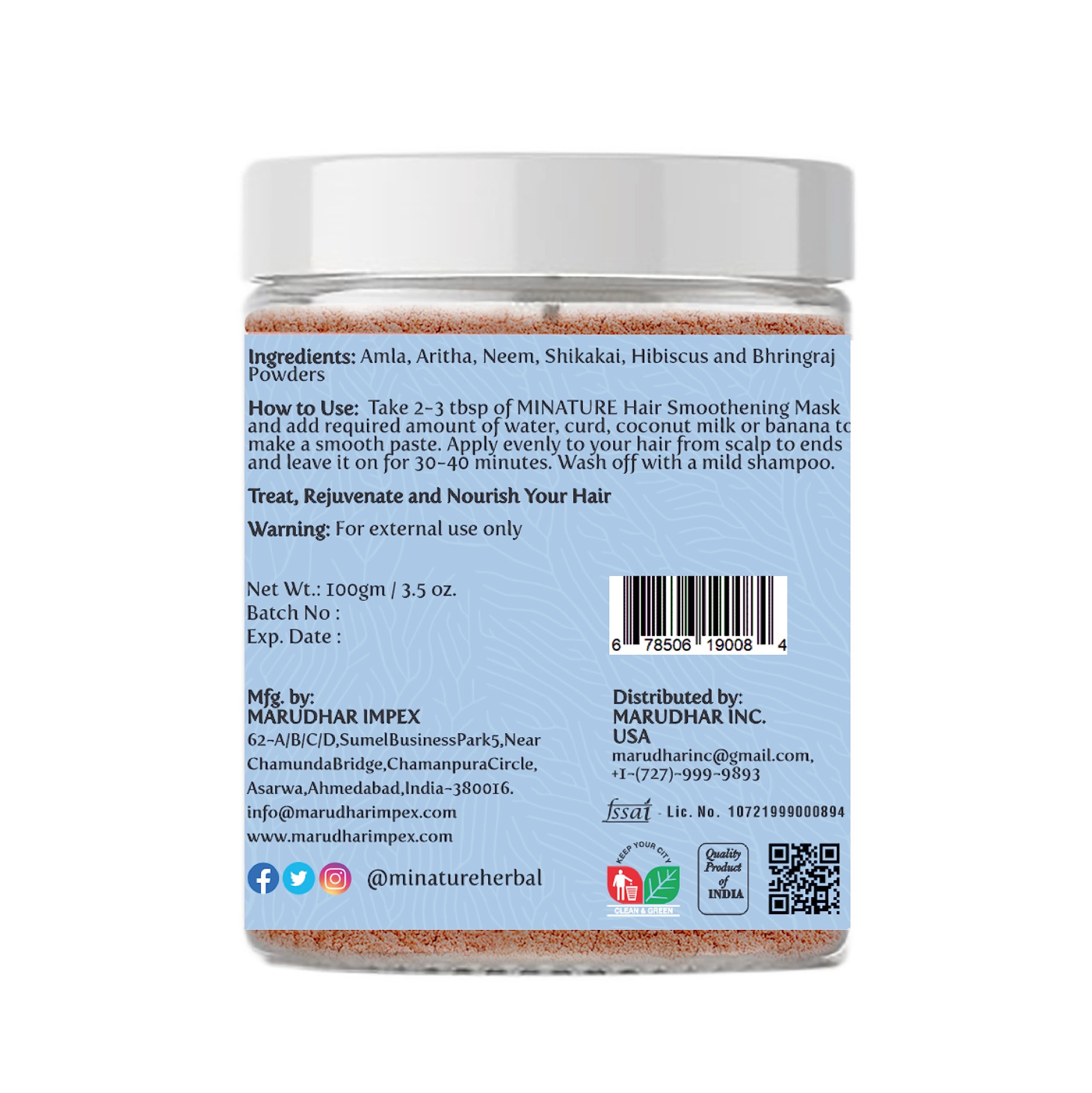 Hair Smoothening Mask contains 6 powderful herbal ingredients to support your hair | Amla powder Aritha powder Neem powder Shikakai powder Hibiscus powder and Bhringraj powder