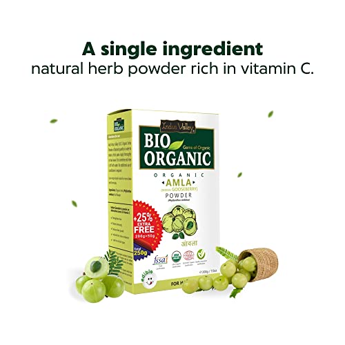 INDUS VALLEY 100% Bio Organic Amla Powder | Indian Gooseberry Powder | Phyllanthus emblica | Natural and Fresh For Healthy Hair - (200gm+50gm)
