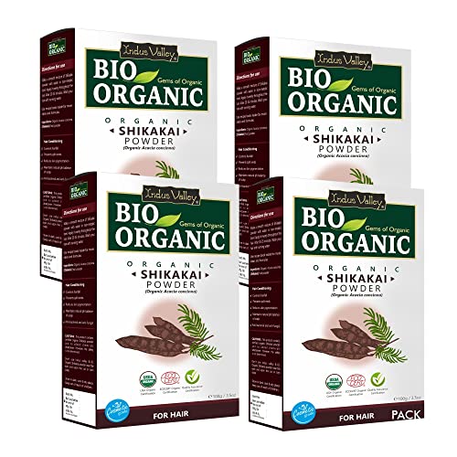 INDUS VALLEY 100% Natural Shikakai Powder | Acacia concinna for skin and hair care - Set of 4 (400g)