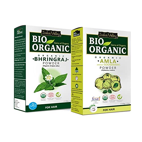 INDUS VALLEY Bio Organic Bhringraj Powder comes with an array of advantages in terms of skin care. This product from Indus Valley is a perfect solution to trust on when you want to avoid problems like premature graying of hair or excessive hair loss. With bhringaraj as its key element it provides your hair maximum protection and care. The Indus Valley Bio Organic Amla Powder is an organic solution to keep your hair healthy and shining throughout. It works as an excellent hair conditioner and due to its organic elements it can also be used as an effective cleanser for face. This pure amla hair powder brings to your hair the nourishment of the Indian gooseberry which has been used by many generations to obtain silky long hair. Amla powder helps in stimulating hair growth and preventing hair loss so now you can rest all your hair fall worries and enjoy long and strong hair. This amla powder is ideal for Men and Women. Both products are 100% Herbal and naturally homemade.