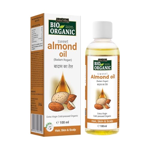 INDUS VALLEY Bio Organic Cold Pressed Almond Oil for Soft & Shiny Hair, Glowing Skin, Hair Damage Protection, Pure Roghan Badam Oil(Tail) for Baby Massage - 100ml