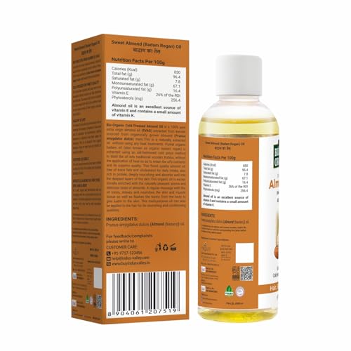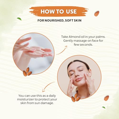 • 100% cold-pressed almond oil for hair and skin.