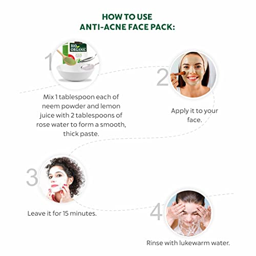 • Neem powder for face pack: Assists with the eradication of acne pimples dark spots and blemishes.