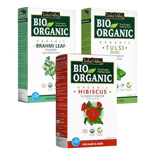 INDUS VALLEY Organic Hibiscus Powder For Hair Care (Hibiscus + Brahmi + Tulsi Powder) -100g *3= 300g