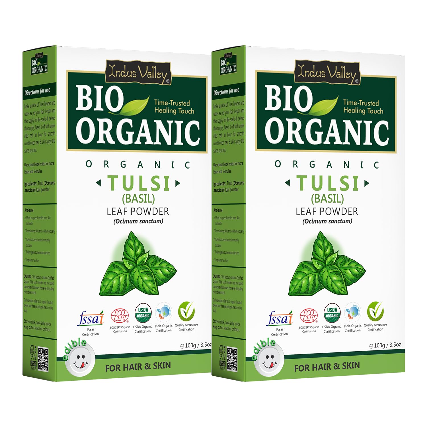 INDUS VALLEY Tulsi Powder 100% Organic and Natural for Skin and Hair Care set of 2 (100g)