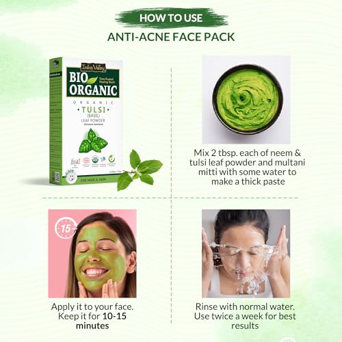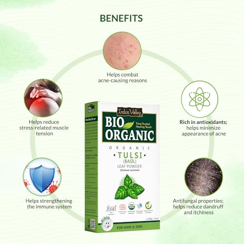 INDUS VALLEY Tulsi Powder 100% Organic and Natural for Skin and Hair Care set of 2 (100g)