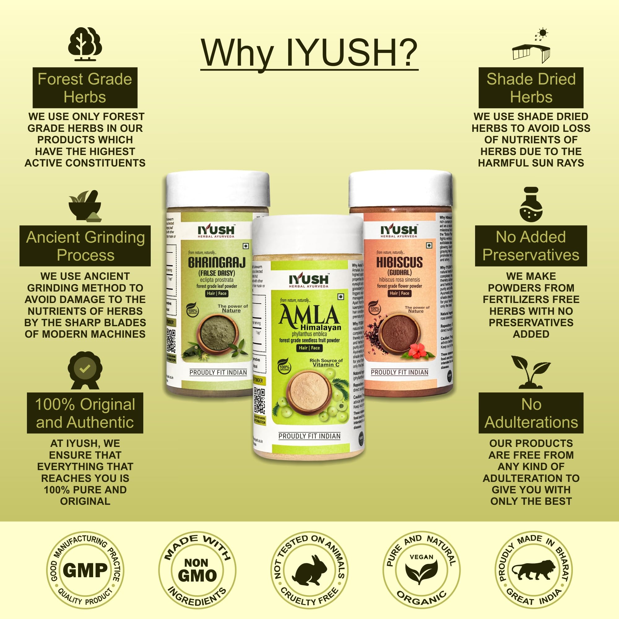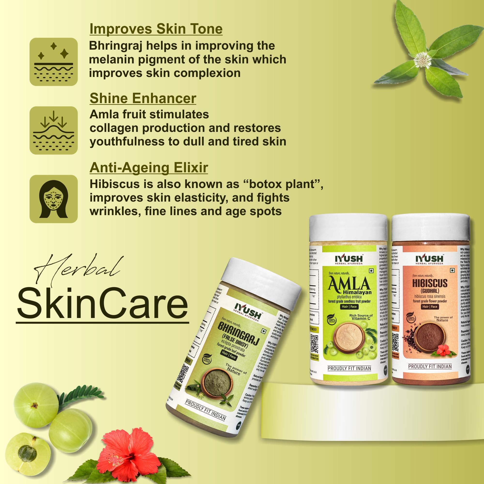 The Combo of Herbal powders is a combination of natural herbs that have been used since ages for a variety of skin and hair care regimens. It is an organic natural combo made from shade-dried wild forest grade herbs that contain the highest active nutrients grown naturally without any harmful chemicals or pesticides or fertilizers.