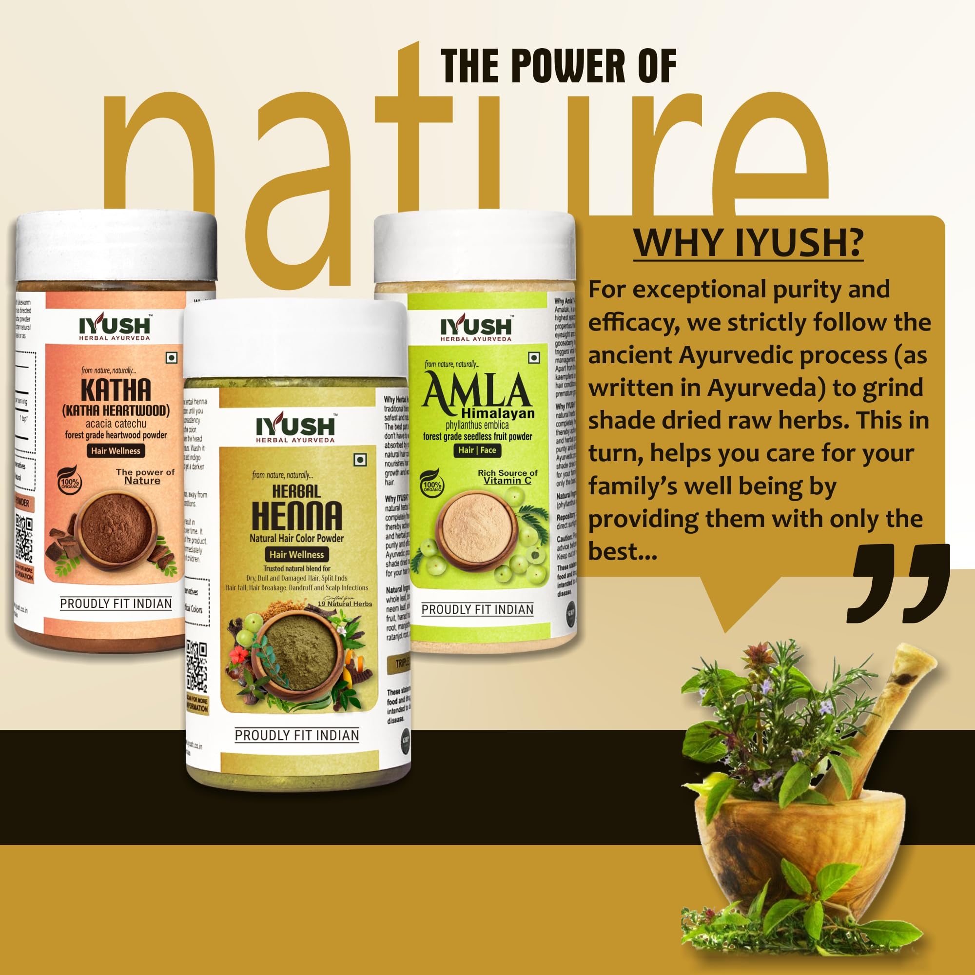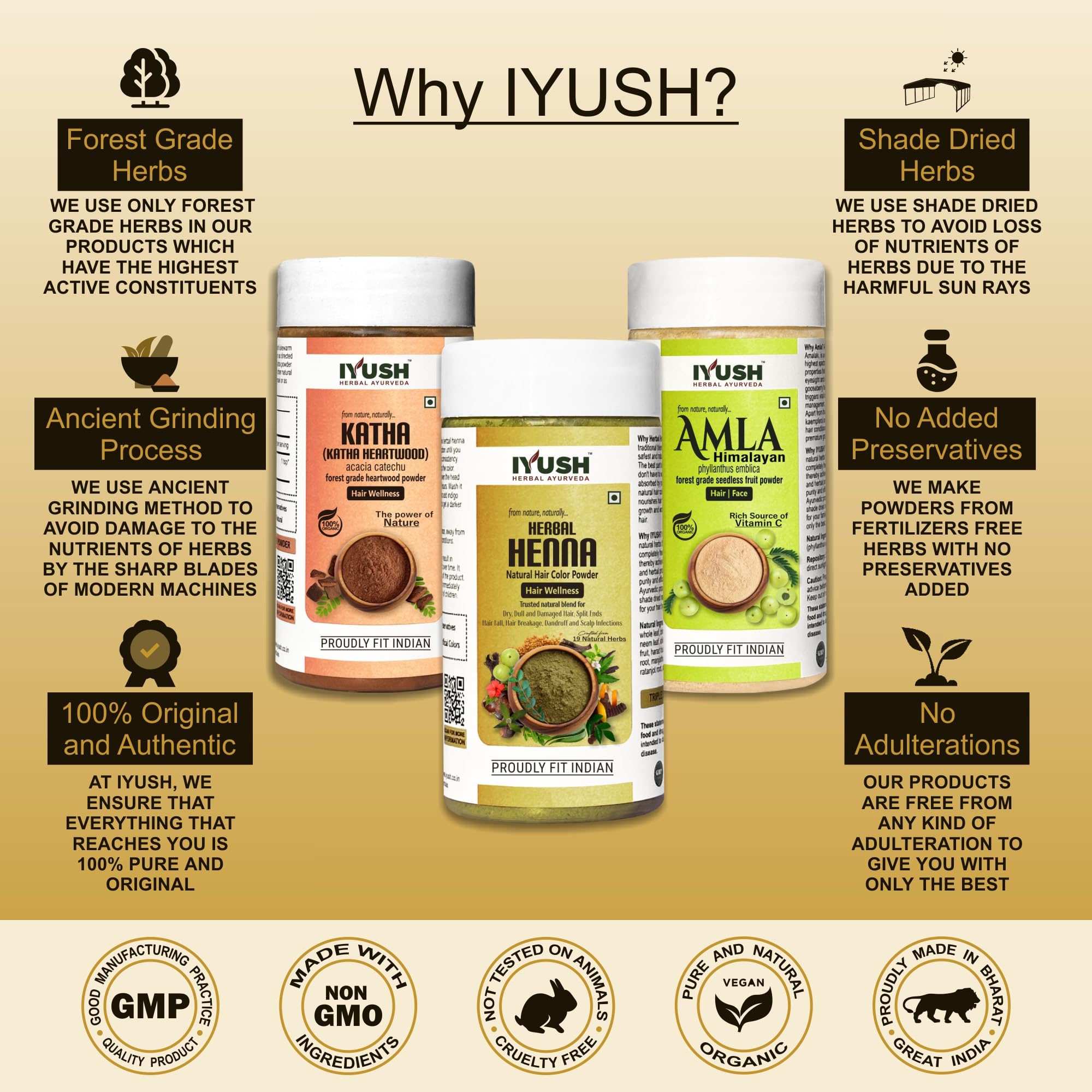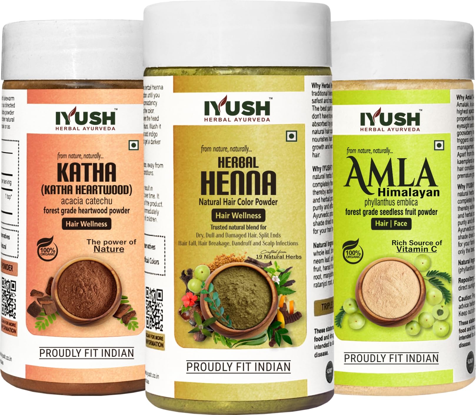 IYUSH Herbal Ayurveda Amla Powder with Katha Powder for Hair and Herbal Henna Powder for Hair Colour 300gm | Natural Hair Colour | Hair Volume Powder | Hair Mask for Dry and Frizzy Hair | 100gm each