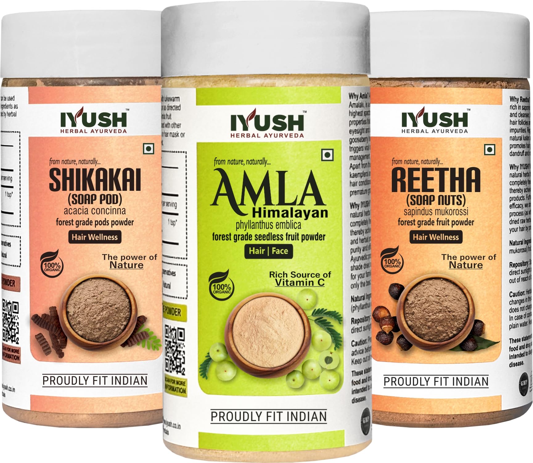 IYUSH Herbal Ayurveda Amla Powder with Reetha Powder and Shikakai Powder for Hair Growth 300gm | Reetha Amla Shikakai Combo | Herbal Hair Wash Powder | Hair Volume Powder | Hair Powder | 100gm each
