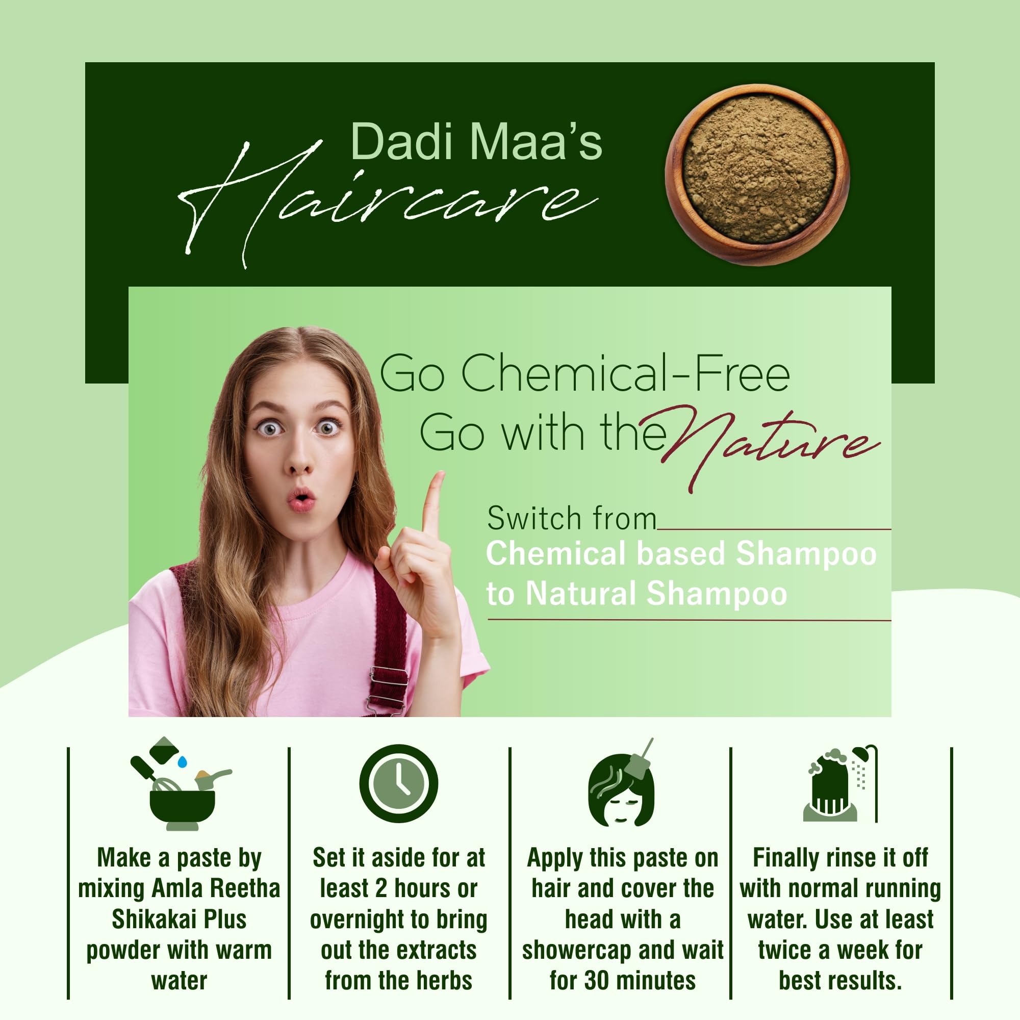 • Amla Shikakai Reetha Powder for Hair Nourishment: It is an ancient and traditional blend of 13 potent natural herbs like Amla Reetha Shikakai Bhringraj Hibiscus Brahmi Methi Tulsi Neem Aloevera etc. mixed in unique proportions. It can be used as natural h