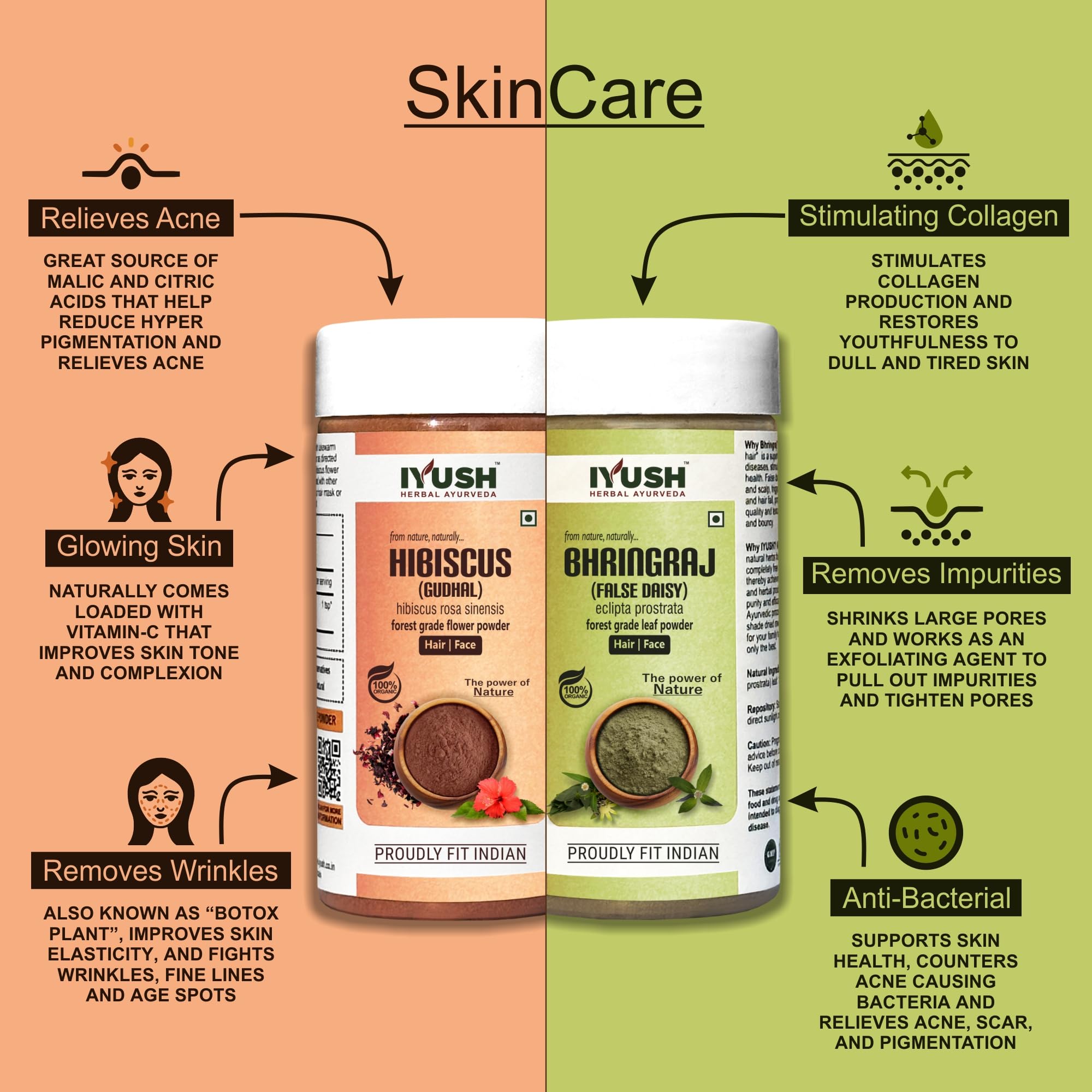 The Combo of Herbal powders is a combination of natural herbs that have been used since ages for a variety of skin and hair care regimens. It is an organic natural combo made from shade-dried wild forest grade herbs that contain the highest active nutrients grown naturally without any harmful chemicals or pesticides or fertilizers.