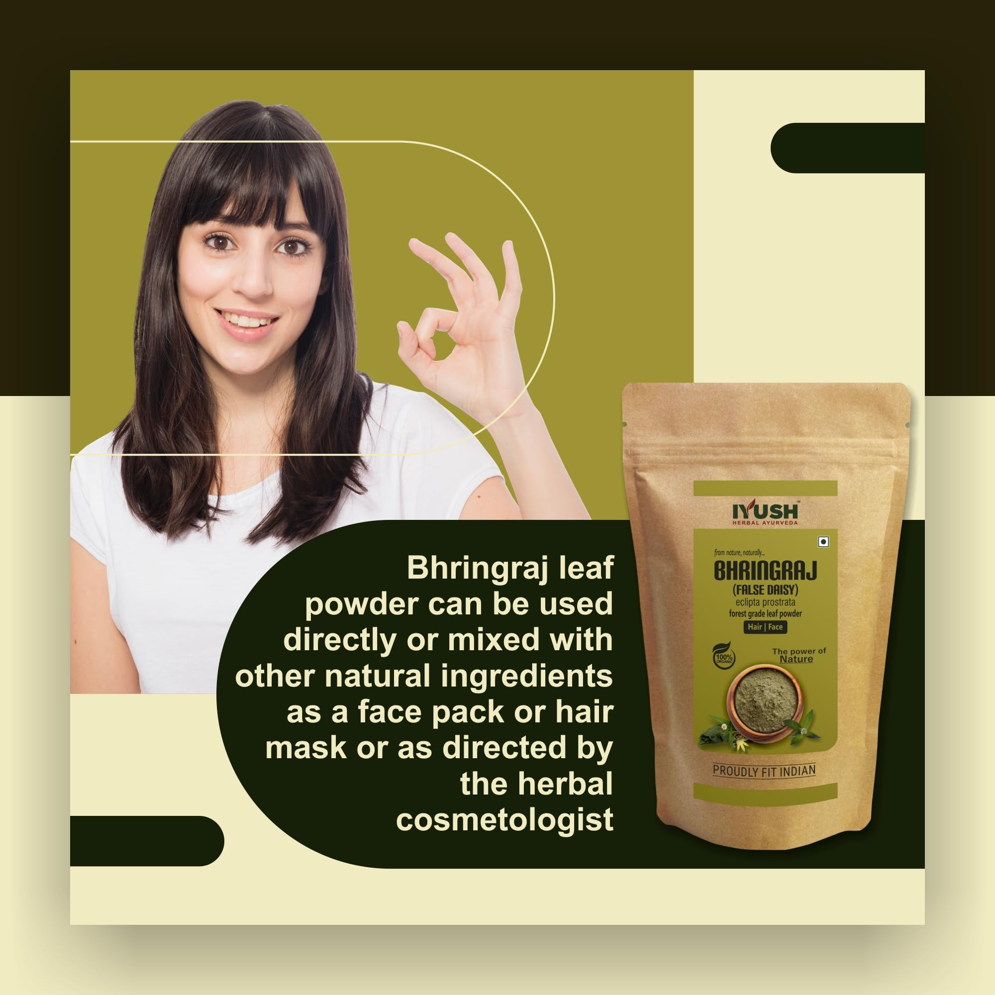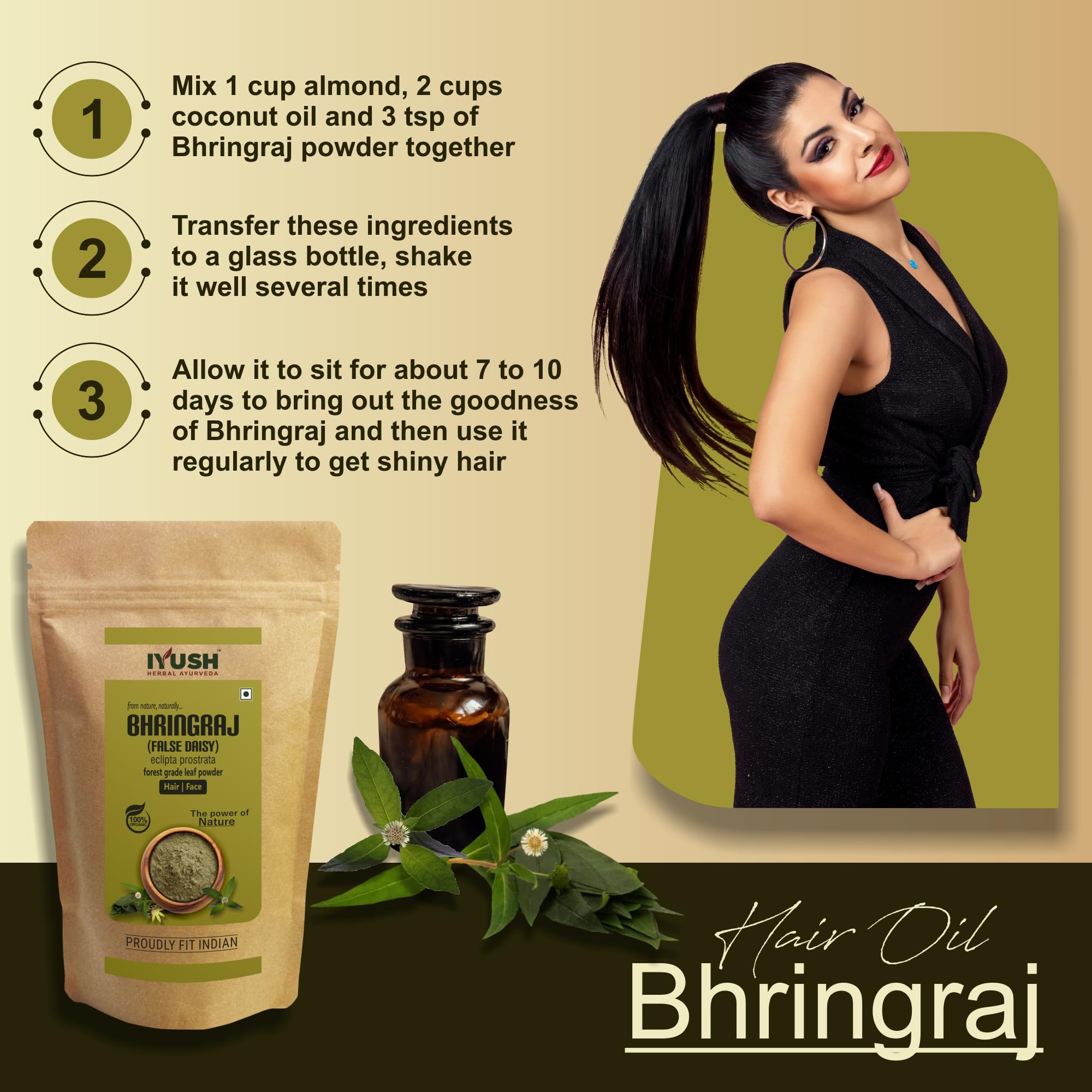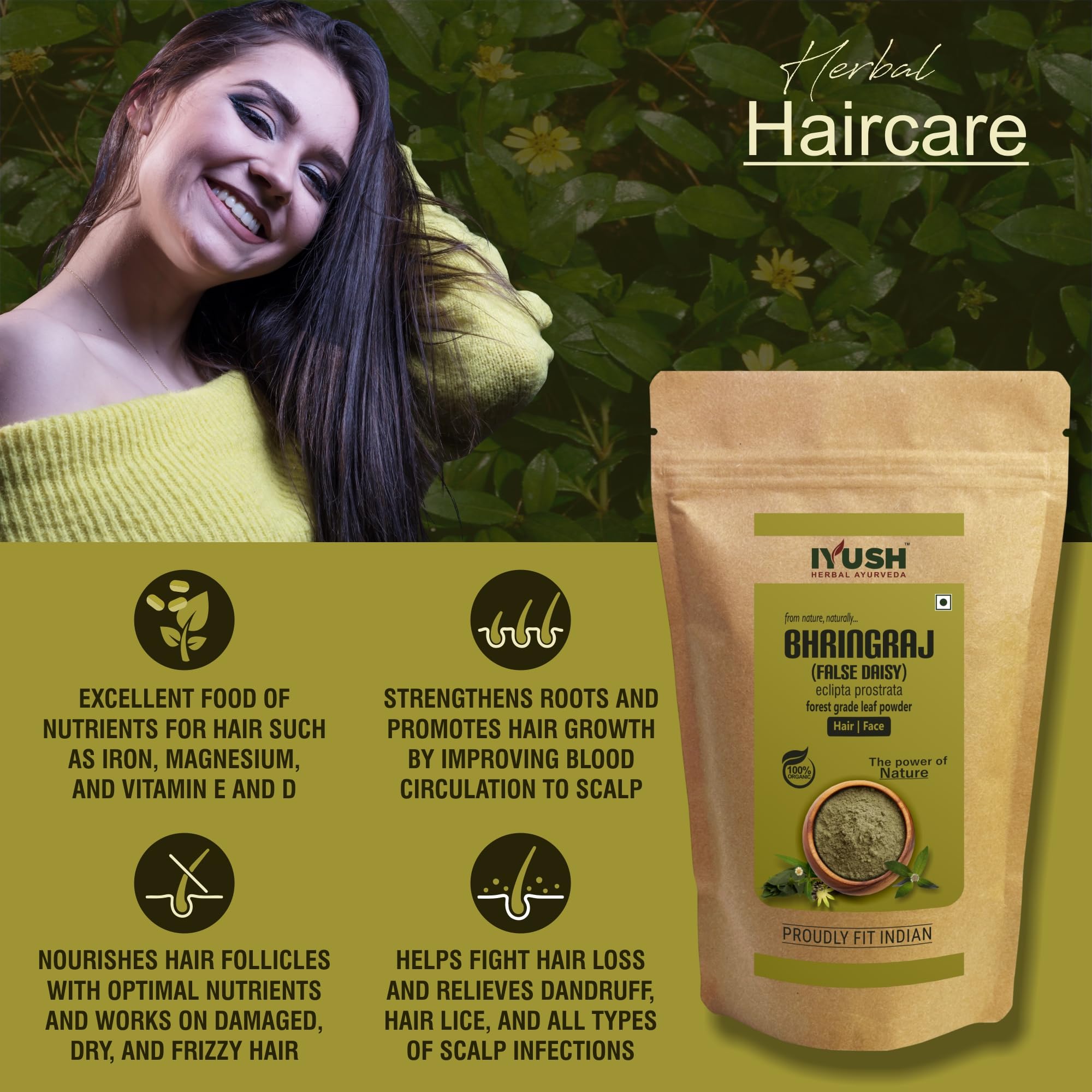 GOOD FOR HAIR AND SCALP : Bhringraj powder contains naturally occurring substances that promote hair growth relieve dandruff and itchy scalp and make hair shiny strong and bouncy.