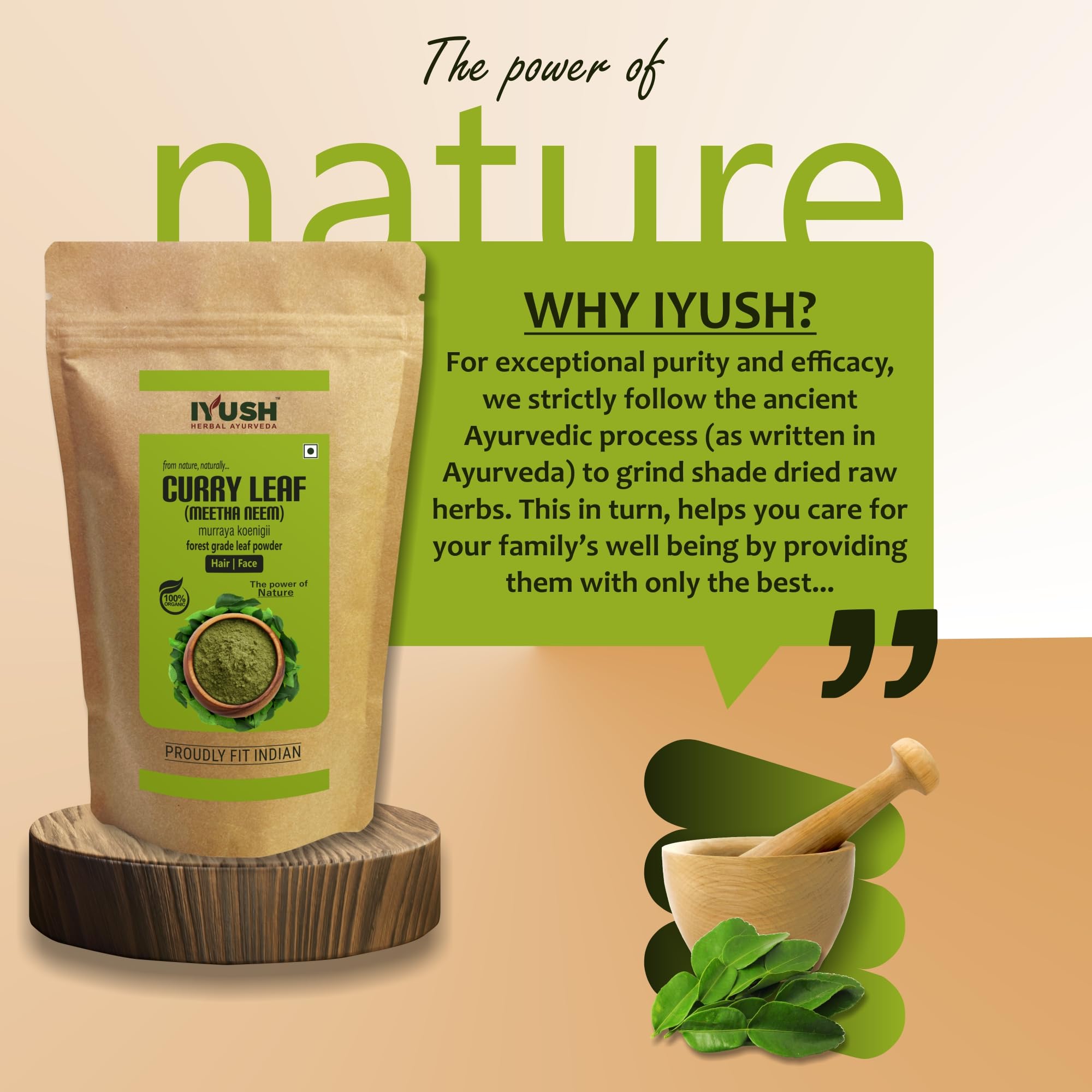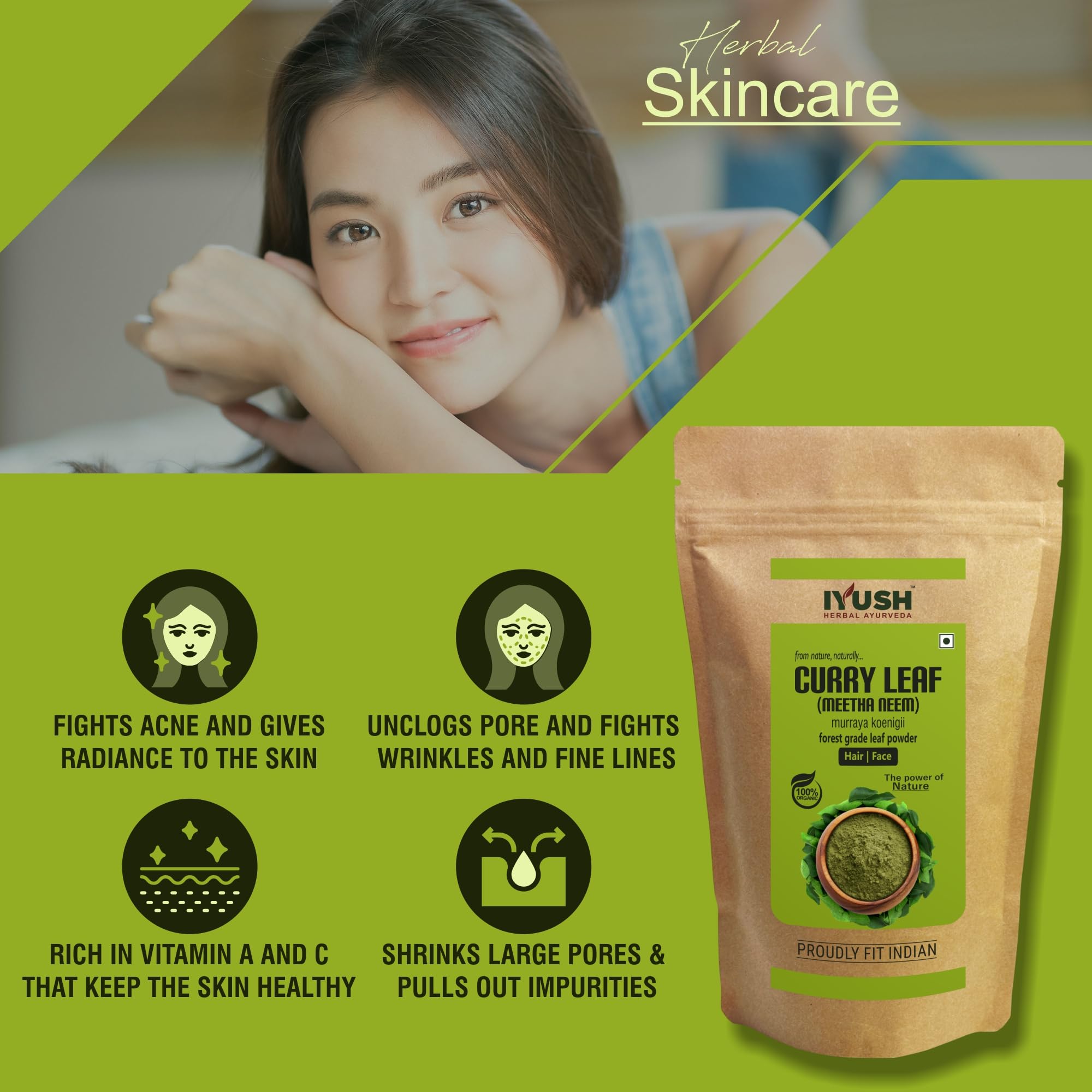 Curry also known as Murraya koenigii is a natural herb that has been used for centuries in Ayurveda for numerous health skin and hair benefits. It is an organic natural powder made from shade-dried wild forest grade Curry leaves that contain the highest active nutrients grown naturally without any harmful chemicals or pesticides or fertilizers.
