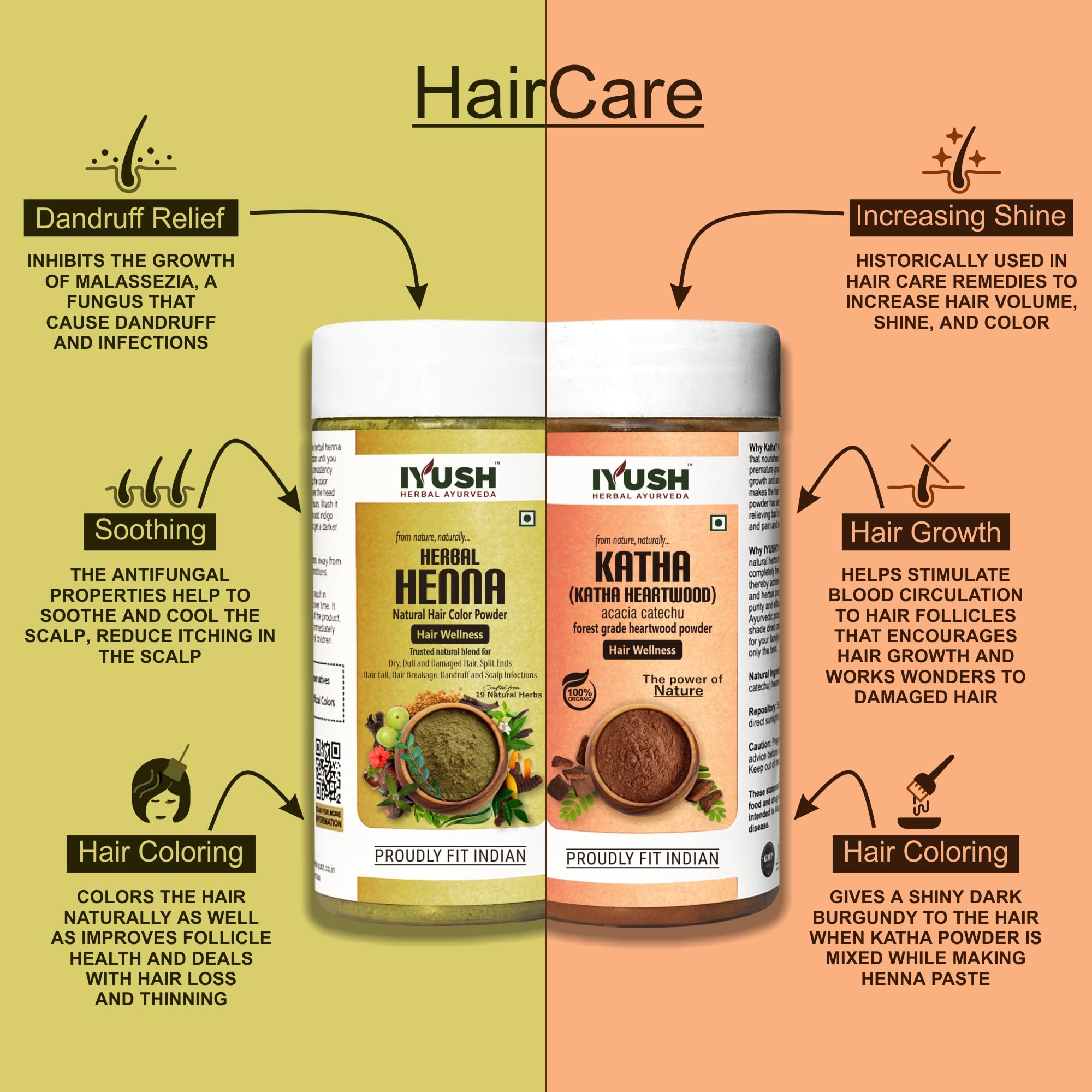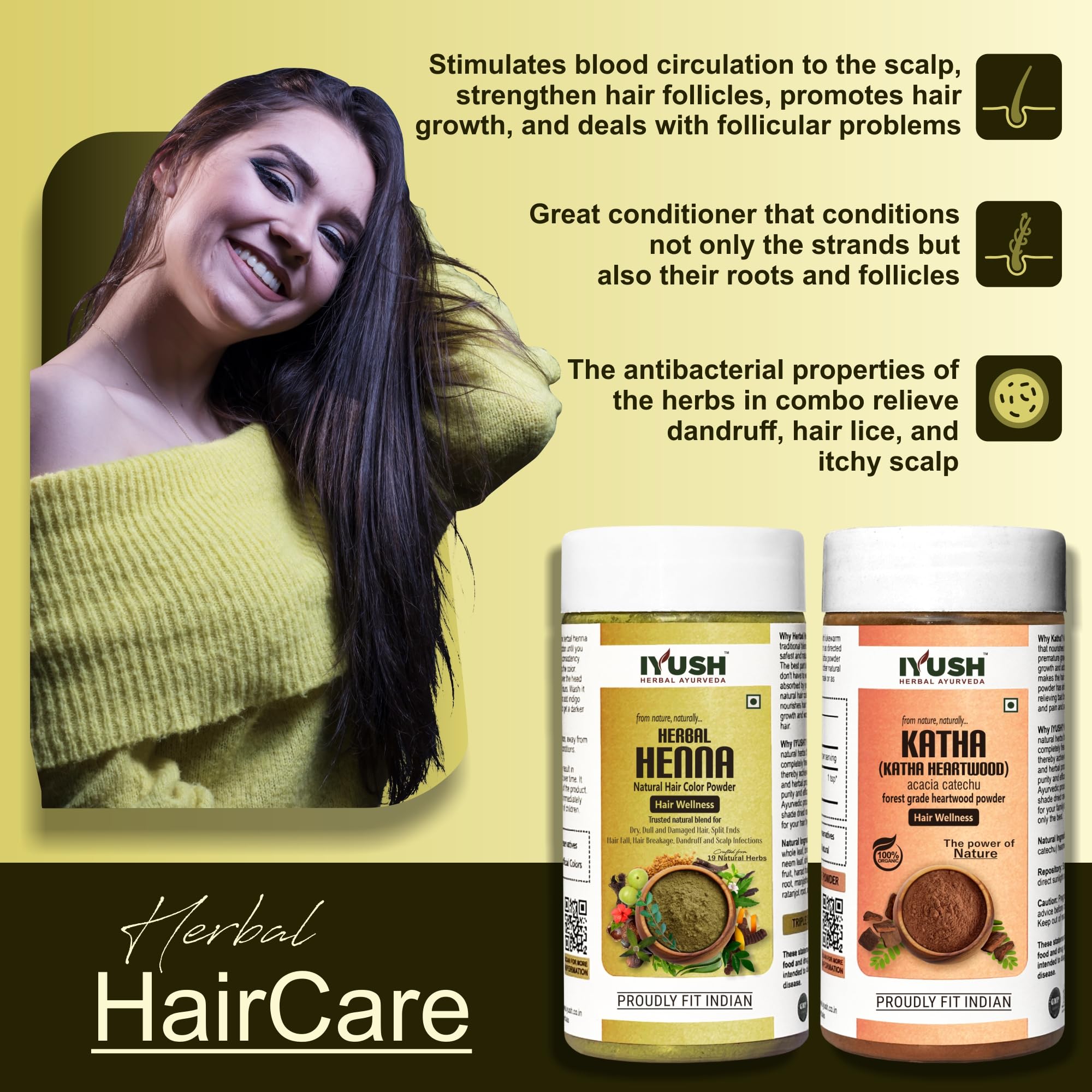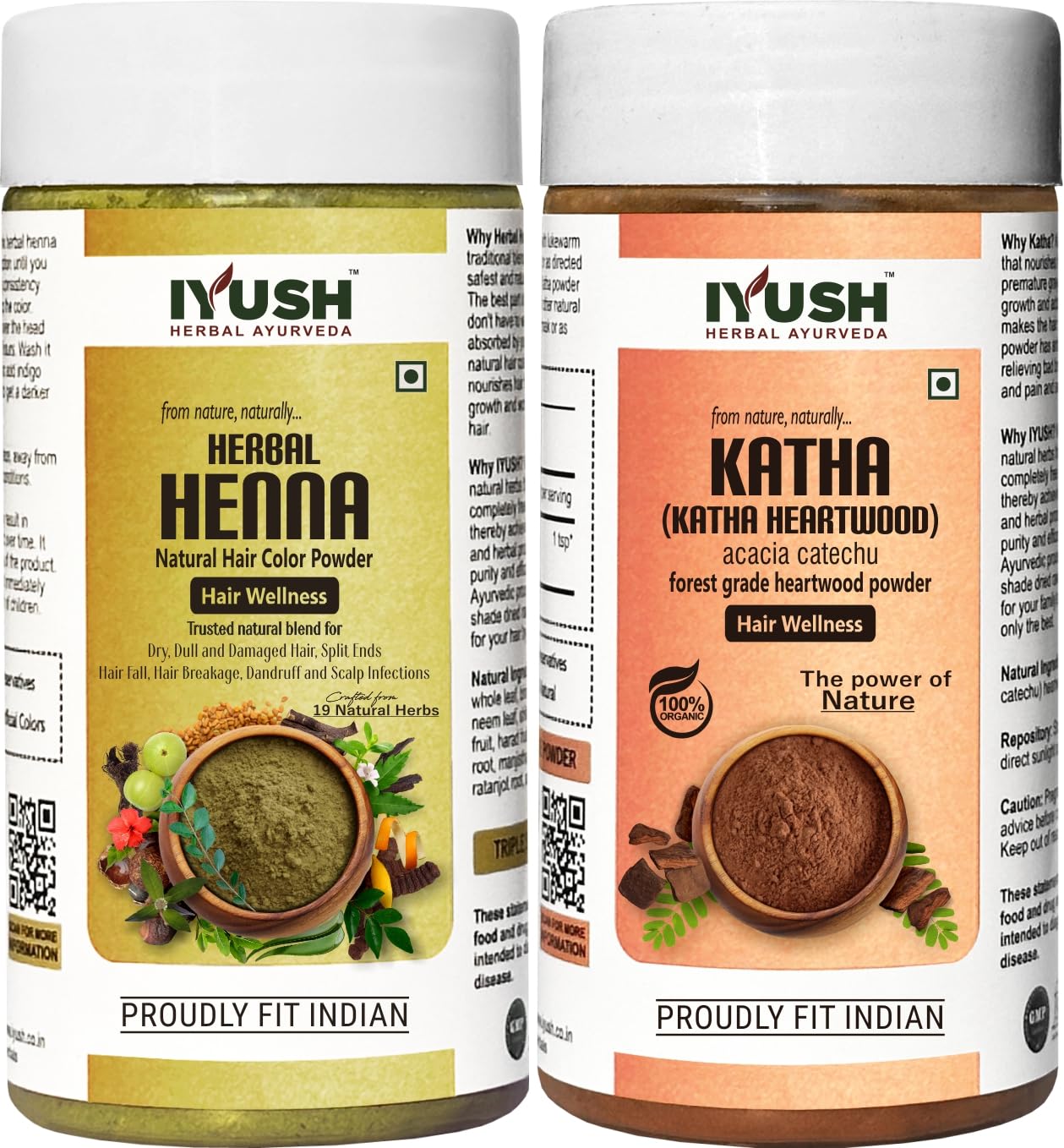 IYUSH Herbal Ayurveda Herbal Mehndi for Hair Color and Katha Powder for Hair 500gm | Natural Hair Colour without Chemical | Herbal Hair Colour | Hair Volume Powder | Hair Powder | 250gm each